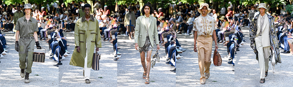 La collezione Fendi Uomo Primavera Estate 2020 invita ad un viaggio, ad un’immersione. Un’immersione nell’interpretazione “fendiana” del rapporto uomo-natura. La maison romana fa sfilare coltivatori chic e giardinieri gentleman nei sentieri del giardino alberato di Villa Reale, contesto bucolico per eccellenza nel milanese.
