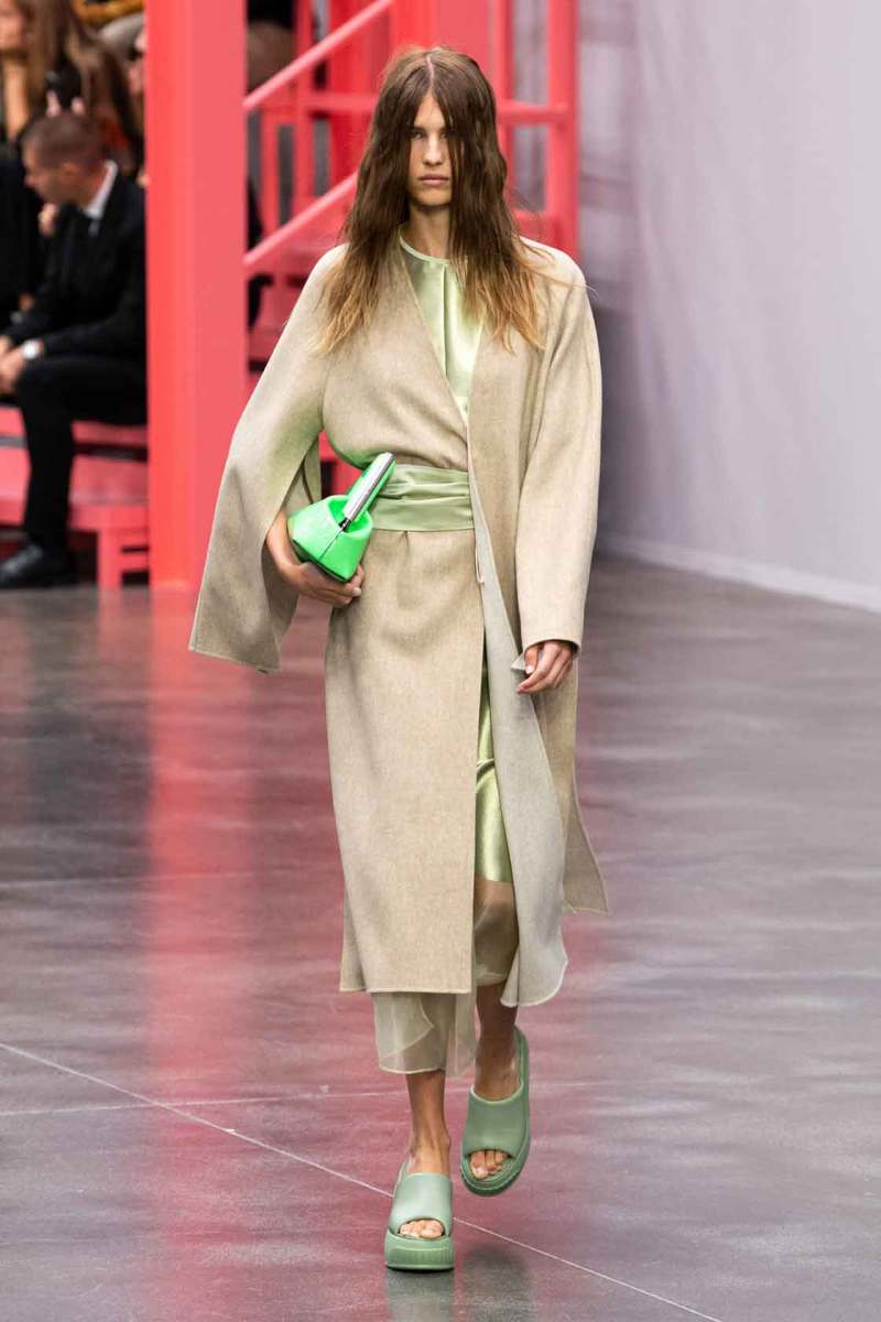 Fin dai primi look non passa inosservata la scelta della palette di colori sorbetto e degli accostamenti, che detteranno tendenza nella prossima stagione. Si parte con il verde mela, accostato ai toni caldi del beige e del cammello, si passa per il rosa antico assieme al verde pallido e si continua con il corallo, il grigio perla, l’azzurro.