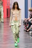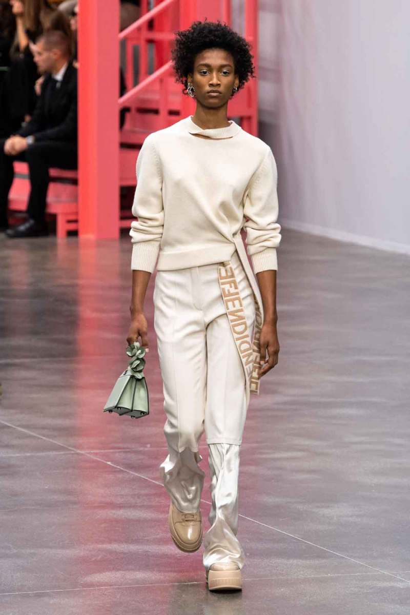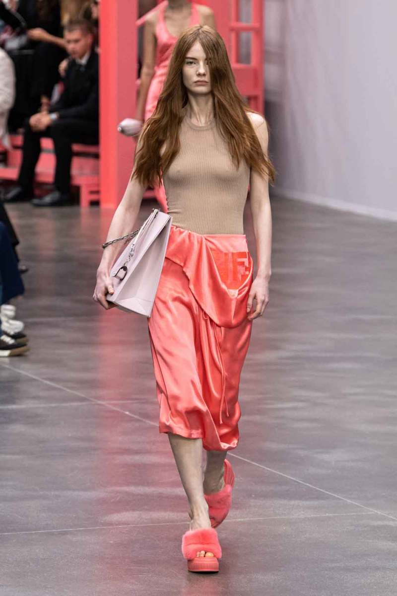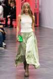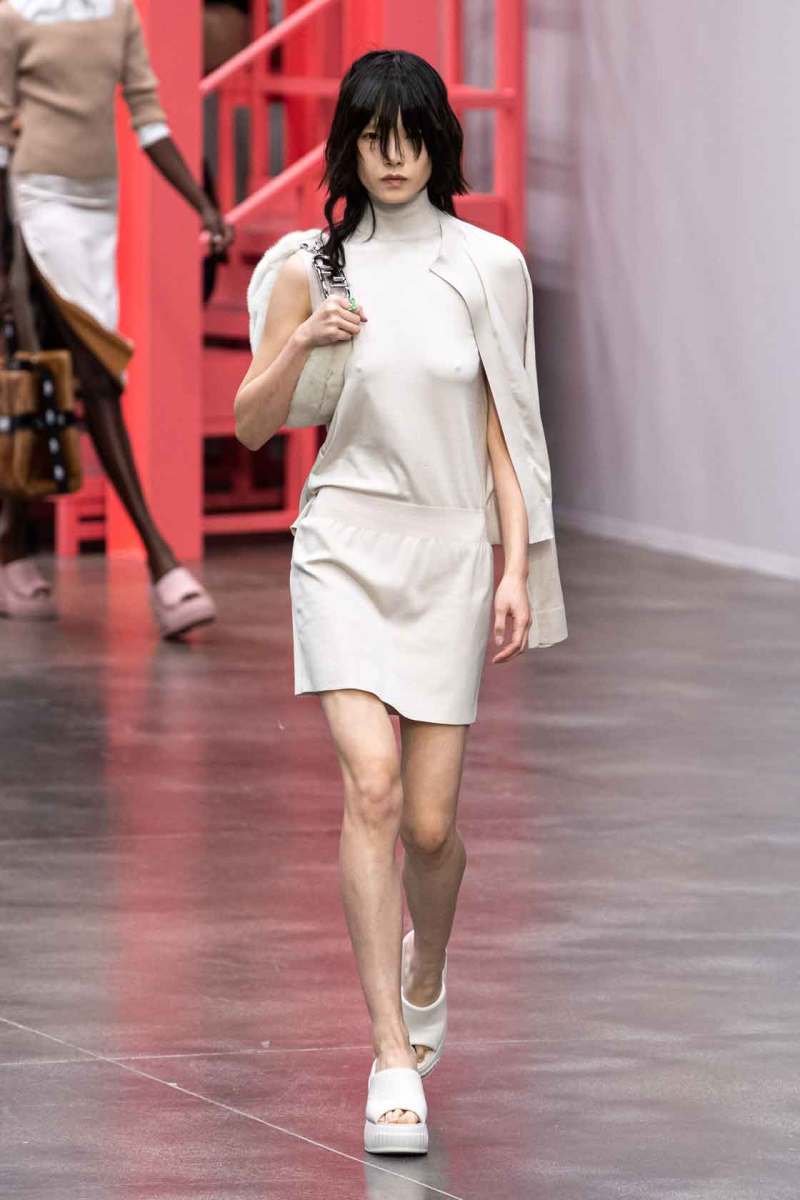 I riferimenti sono chiari: Kim Jones ha voluto riprendere i codici degli anni a cavallo tra ‘90 e 2000, quando a dirigere la Maison c’era l’iconico Karl Lagerfeld, che disegnava abiti dalle linee minimaliste. Nei look in passerella, infatti, ritroviamo l’eco dei suoi kimono, delle cinture obi e dei tablier, gli abiti-grembiule alla francese. L’omaggio all’Heritage della casa di moda romana si unisce e sovrappone però con naturalezza allo stile contemporaneo, che cavalca le nuove tendenze dettate dalla generazione Z, come i pantaloni cargo a vita bassa e lo scollo a canotta dei top.