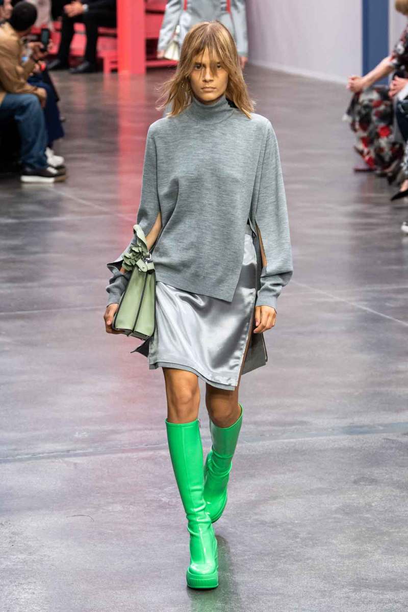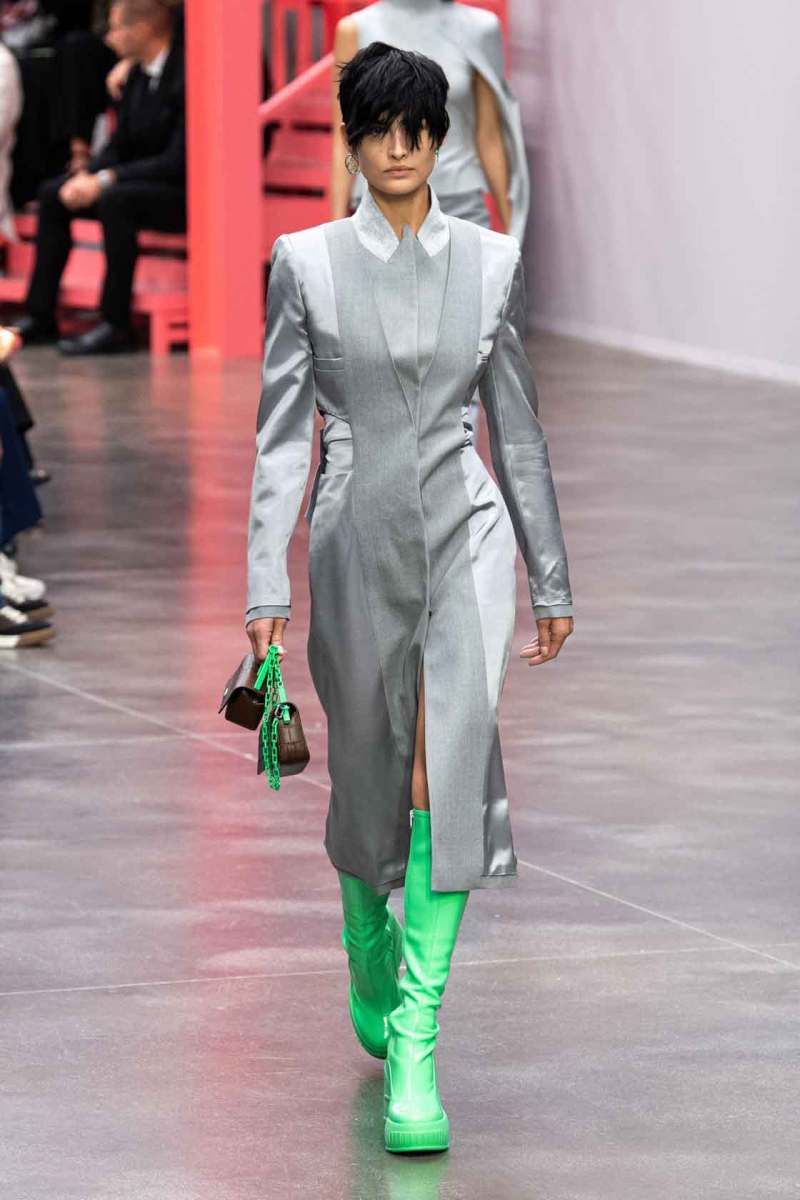 Vivacità negli accessori Un posto in primo piano non potevano che averlo le borse, che danno carattere ai look con i loro colori vivaci e le loro silhouette nuove. Silvia Venturini Fendi propone svariate combinazioni di due borse, una mini e una regular, da portare assieme, concatenate. La nuova versione della Peekaboo bag tagliata a metà e le First in versione lucida e maxi sono probabilmente le future hit-bag della prossima stagione. Ai piedi, invece, vince la stravaganza: le modelle portano zeppe in pvc con e senza pelo e stivali platform lucidie colorati con le F di Fendi rovesciate.