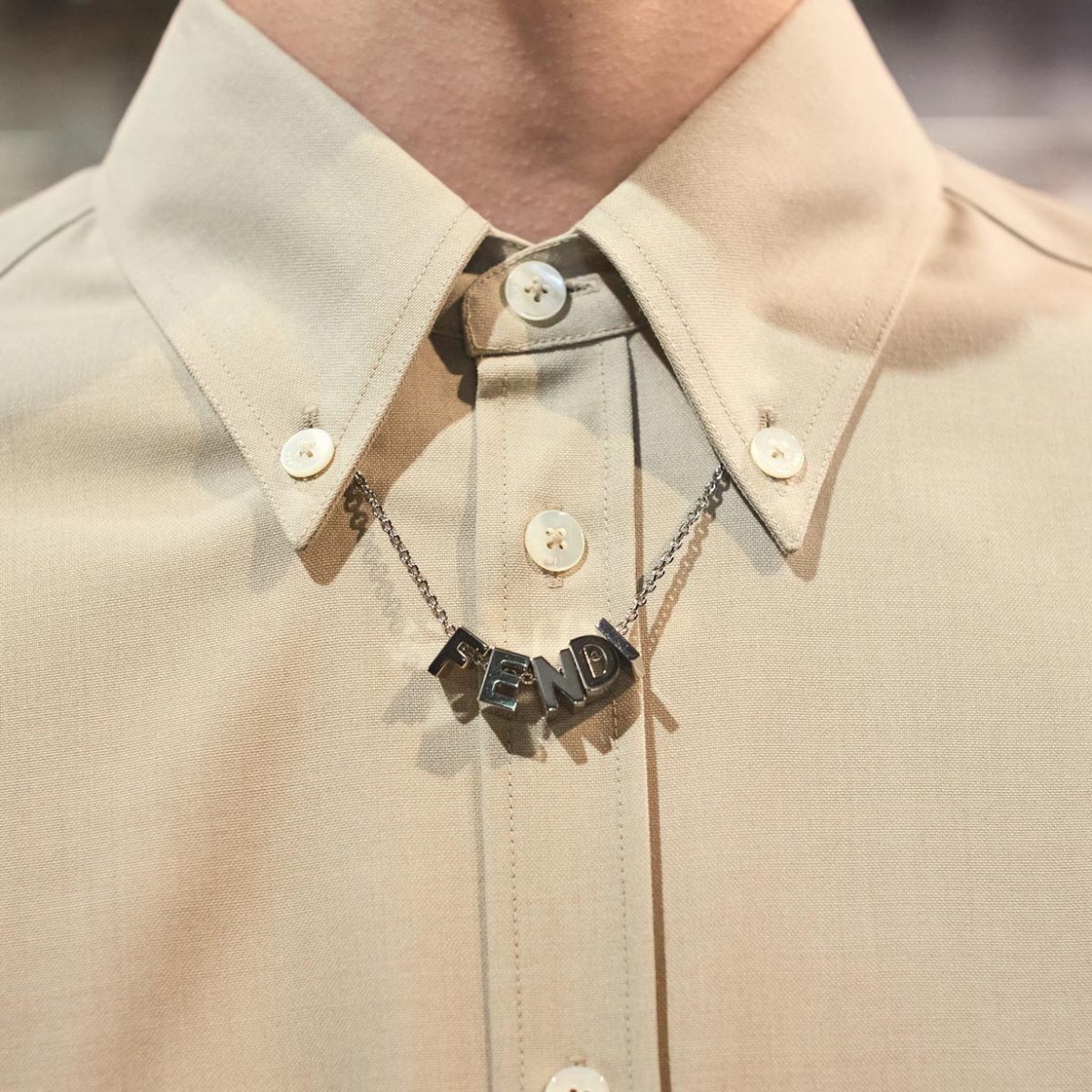 Non mancano infine i gioielli, progettati dalla direttore artistica del dipartimento gioielleria Delfina Delettrez Fendi. Ciondoli a forma di chiave dell’armadietto, piastrine “Made in Fendi”, spille con scritta “Staff Only” e orecchini a cerchio 1925 giocano sugli elementi della quotidianità alla Fendi Factory con un tocco divertito e divertente, a dimostrazione che il lavoro può essere serio anche senza prendersi troppo sul serio.