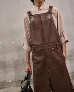 Sono proprio i lavoratori, anzi, gli artigiani ad essere al centro della sfilata per la P/E 24. Il leit motiv è quello dell‘eleganza utility, del vestirsi per lavorare ma anche per creare. In un esercizio di meta-riflessione, la direttrice artistica Silvia Venturini Fendi ambienta il défilé fra i macchinari di lavorazione della pelle e al cospetto degli stessi addetti ai lavori che, ogni giorno, danno vita a borse e accessori del marchio a doppia F.