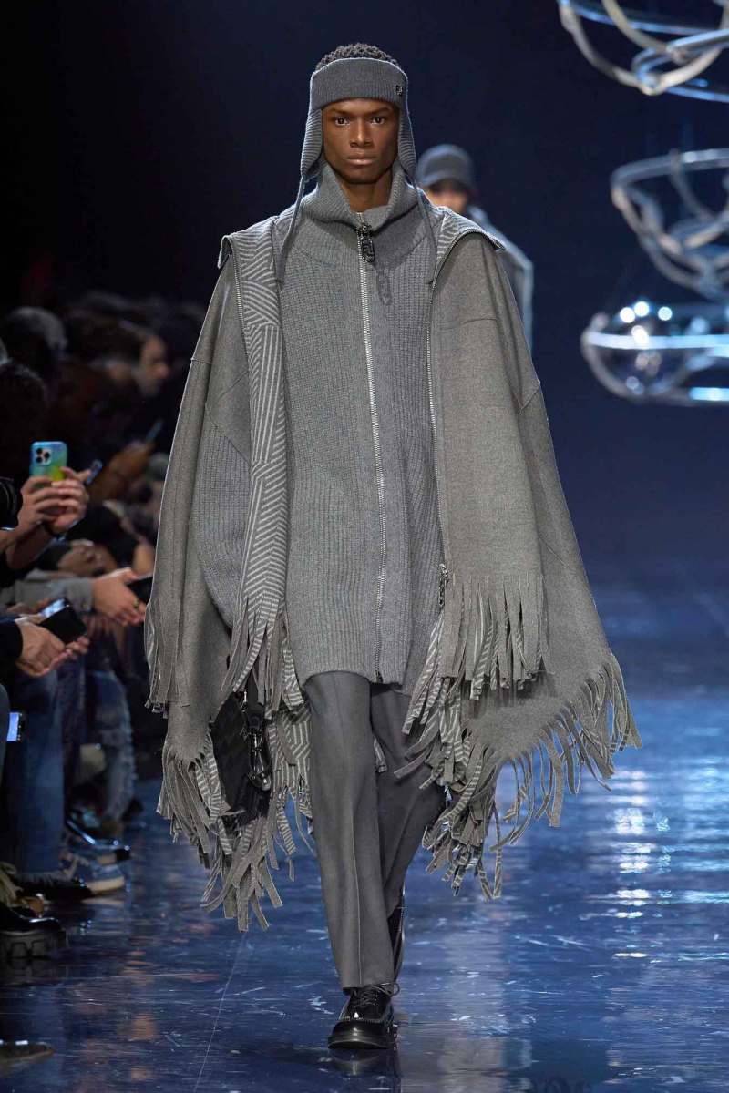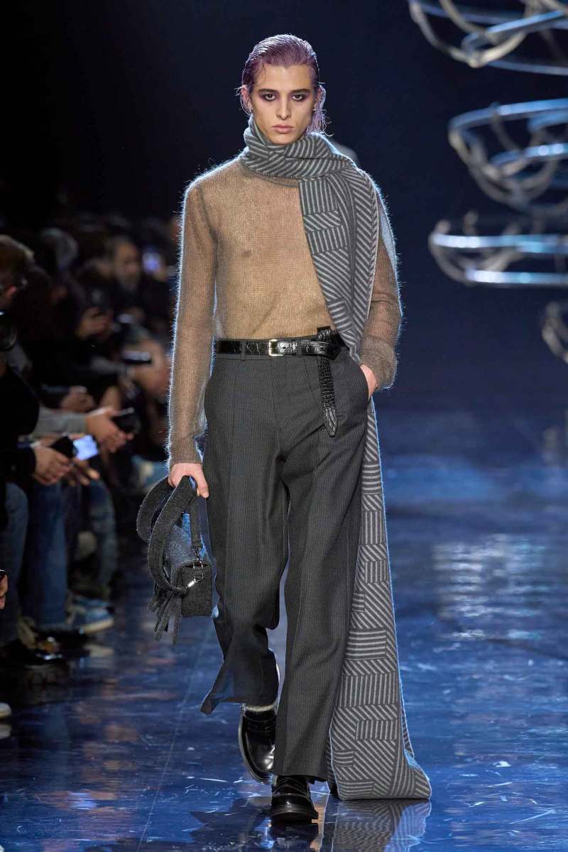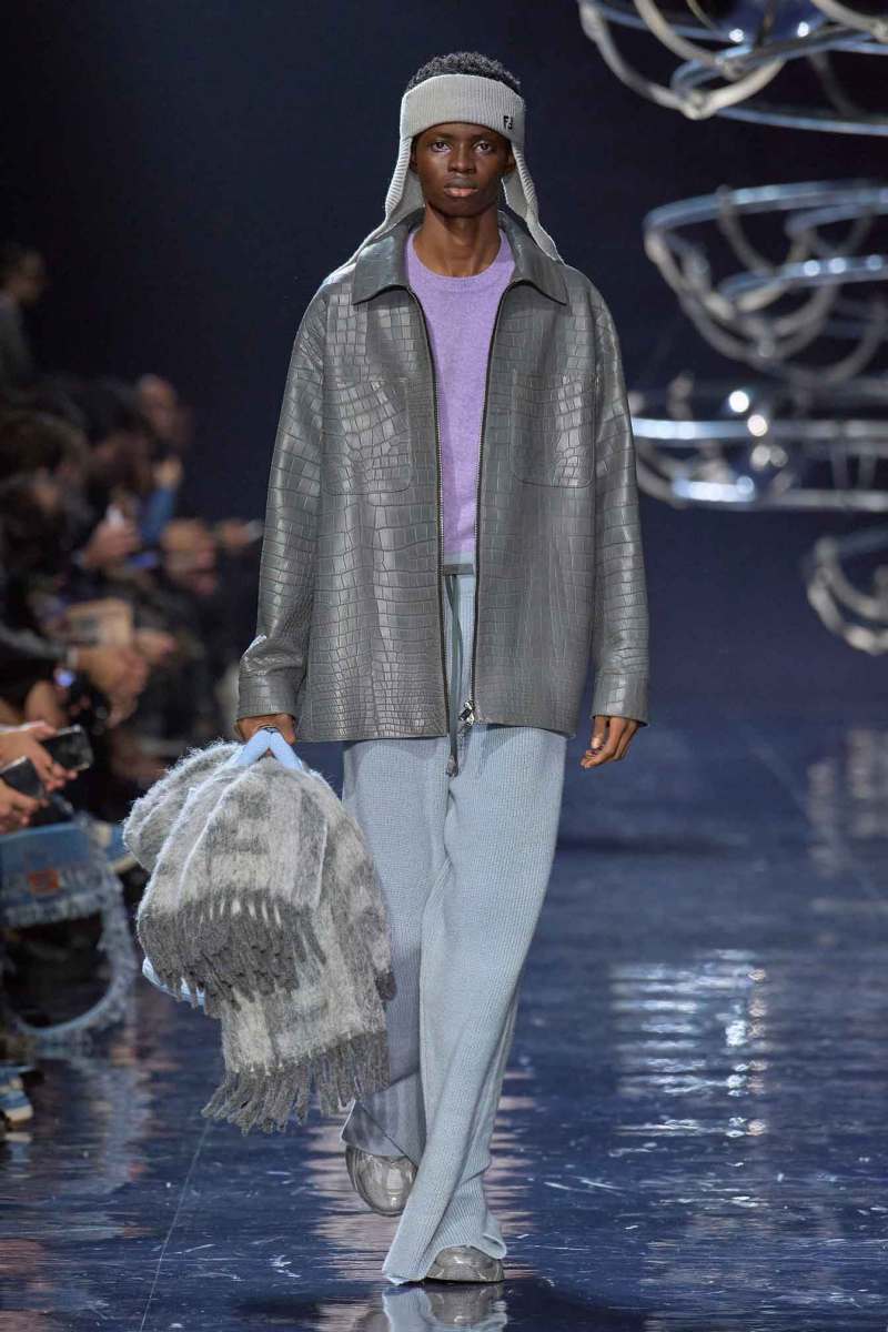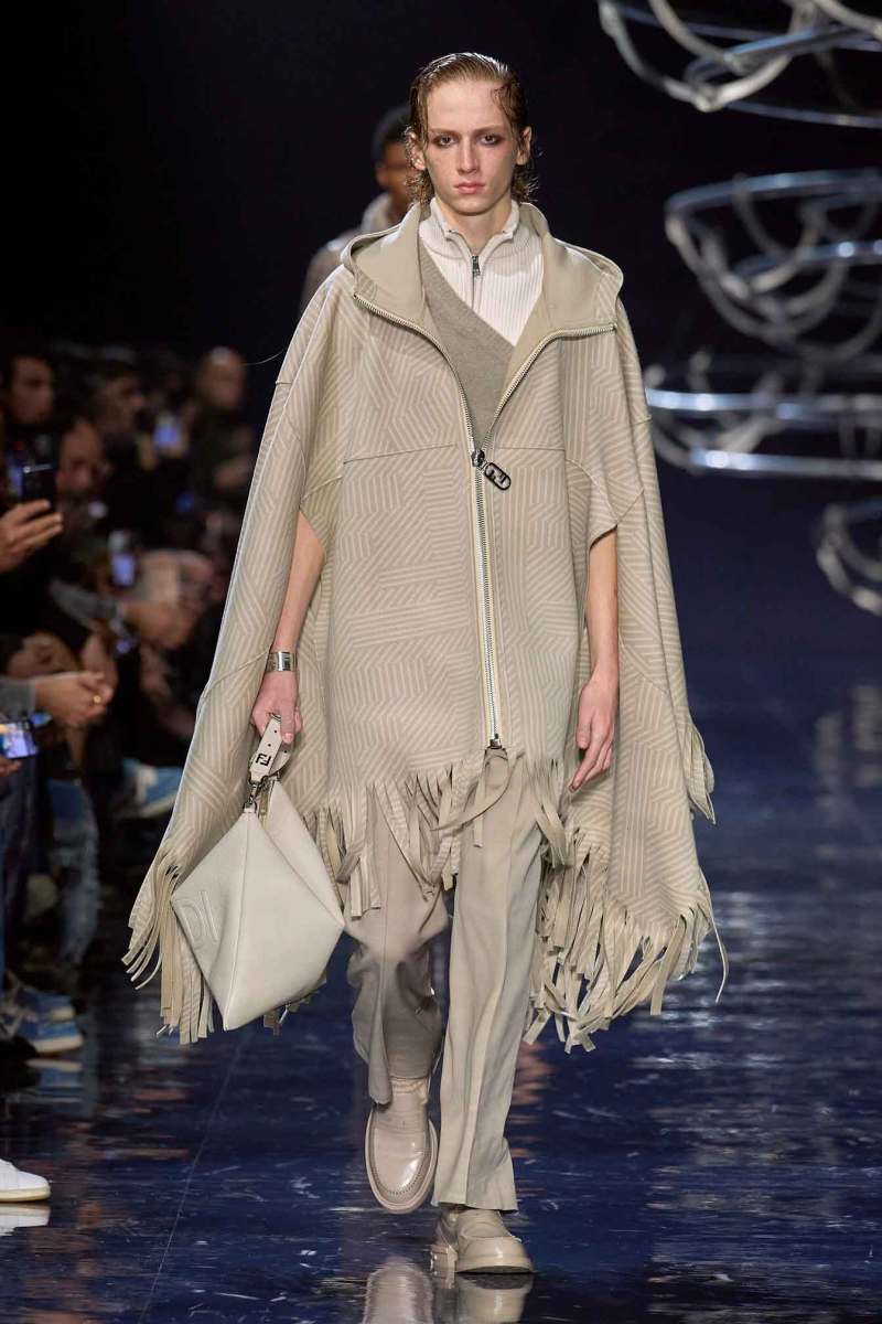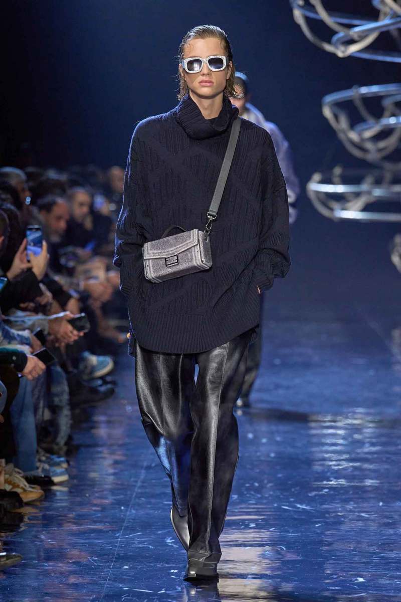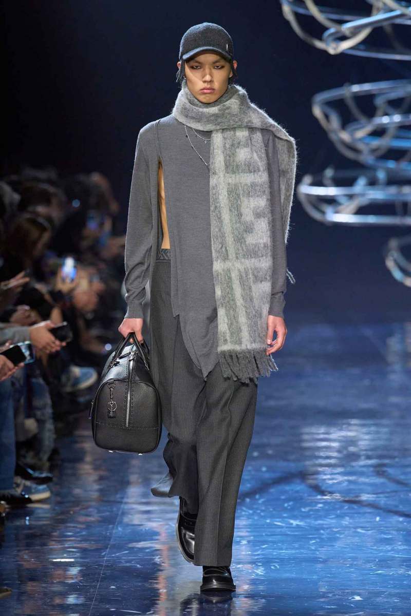 Siamo la generazione del gender fluid e, per quanto la mascolinità sia dichiarata, la collezione Fendi Uomo ha ormai accolto anche accessori simbolo del mondo femminile. Innumerevoli, infatti, sono le borse: non può mancare l’iconica Baguette, in pelle brunita e dotata di tasche all-over; spicca anche la Peekaboo, storica bag della Maison che compie 15 anni e che evolve in tracolle metalliche e montone spruzzato. Da segnalare anche la nuova hobo bag in camoscio e i secchielli in cashmere. Bella la varietà di calzature ai piedi: spiccano gli stivaletti con la F metallica sul tacco, i mocassini, le stringate e le sneakers.