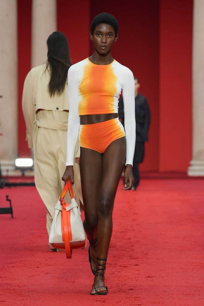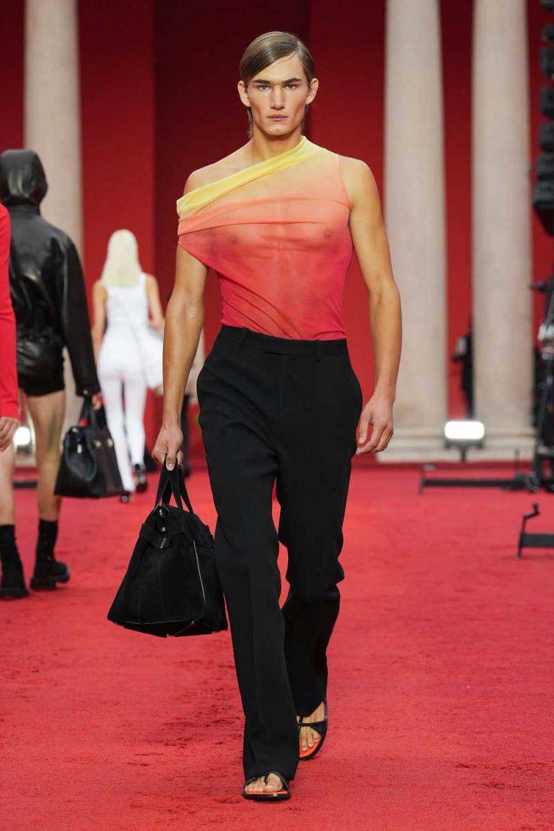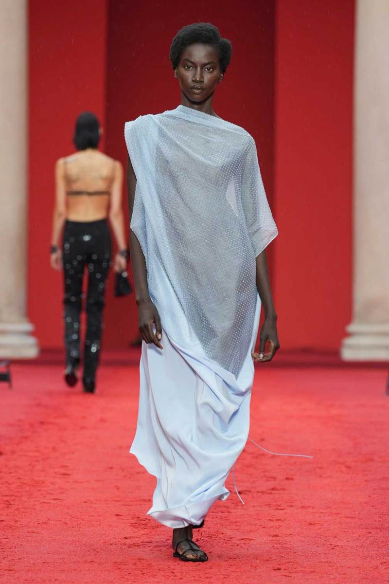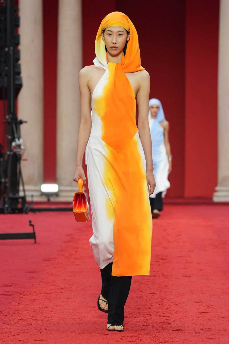 Il direttore creativo gioca anche sul concetto di “alba e tramonto a Hollywood”, utilizzando un degradé sull’intera collezione ispirato alla “Sunset series” dell’artista Rachel Harrison.
