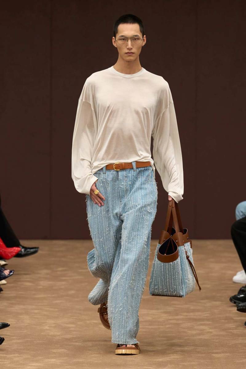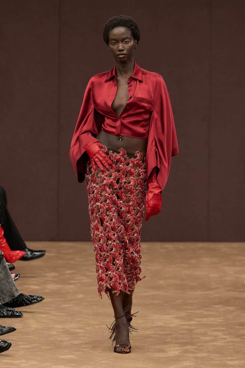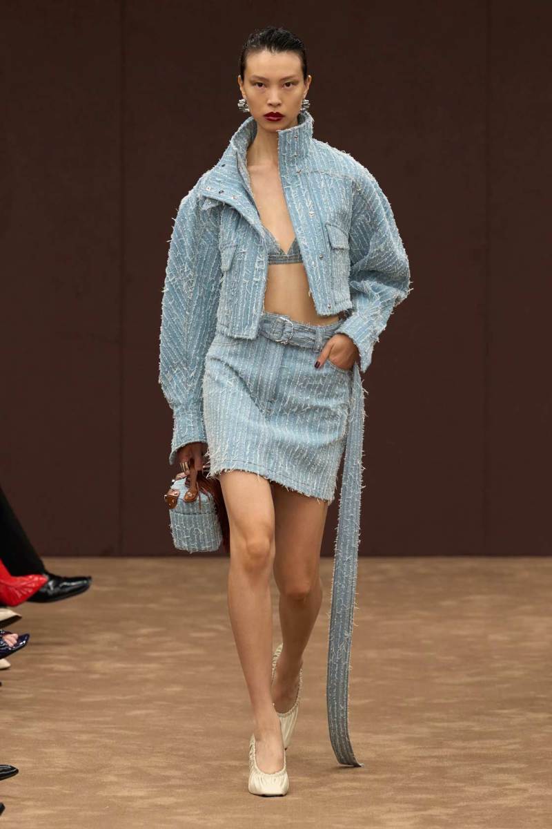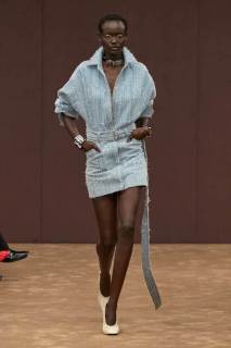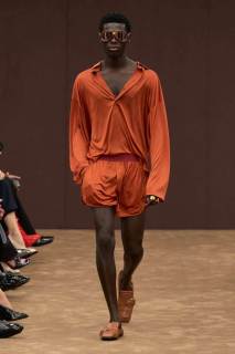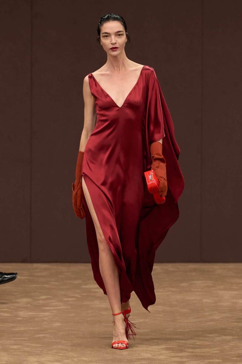 Con 33 look da donna e 18 da uomo, la collezione offre soluzioni per ogni occasione. Per le donne, spiccano abiti, blazer oversize abbinati a gonne midi, pantaloni in pelle e bralette, oltre a workwear in denim e pelle che richiamano le tute dei piloti, reinterpretate in chiave glamour. I look maschili, altrettanto ricercati, includono completi con giacche oversize, workwear in pelle e giacche cargo, fino ad arrivare a degli inaspettati pigiami in jersey, come il set composto da pantaloncino tipo boxer e maglia a maniche lunghe con scollo a V.