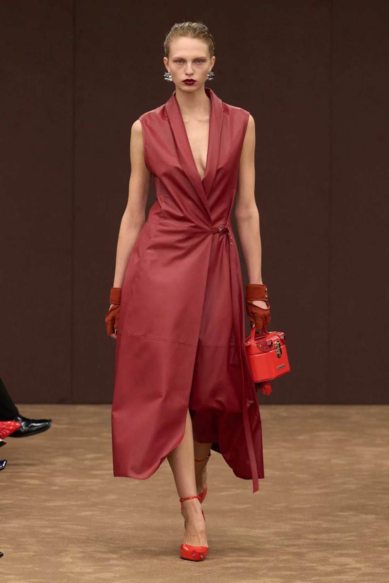 La collezione, firmata dal direttore creativo Rocco Iannone, si intitola The Ferrari Cabinet e trae ispirazione dal concetto di cabinet, ovvero armadio, per esprimere l’idea di un guardaroba completo, pensato per ogni occasione, lavoro compreso. “Il guardaroba racconta e conserva”, spiega Iannone, “è lo spazio fisico della vestizione quotidiana ma anche il contenitore nel quale si custodiscono gli oggetti che sostanziano questa pratica. Lo governano efficienza e intimità”. La linea è caratterizzata da un’eleganza essenziale, arricchita da tocchi di sensualità attraverso il sapiente uso di trasparenze e spacchi, che creano un raffinato gioco di vedo non vedo. I capi iconici di Ferrari, come cappotti, blazer e abiti, sono stati rivisitati rispettando gli elementi del brand, ma con un twist moderno. La palette cromatica spazia dal classico rosso Ferrari a tonalità come marrone, arancione, verde, giallo e bianco, con incursioni di denim e pelle, offrendo una gamma di colori vibrante che incarna l’energia e lo stile dinamico della casa di moda maranellese.