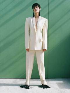 La palette cromatica della collezione riflette il gusto personale di Colangelo, che preferisce le nuance naturali e senza tempo piuttosto che seguire le tendenze stagionali. Questo approccio distintivo emerge chiaramente nella collezione, che si distacca dai codici tradizionali della moda prêt-à-porter per abbracciare un’estetica unica e duratura.