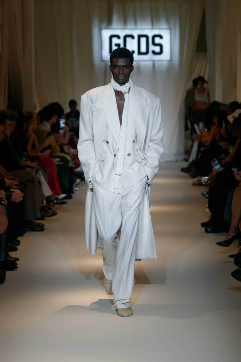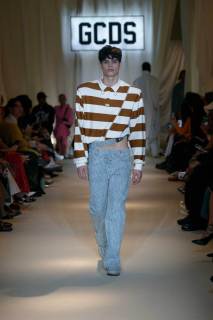Dopo prolungate deviazioni in territori lontani, Giuliano Calza quest’anno decide di tornare a casa. Lo show si svolge infatti nella sede di GCDS. L’atmosfera intima e appunto casalinga trascina l’attenzione degli ospiti sugli abiti e non più sullo spazio circostante e lo spettacolo.
