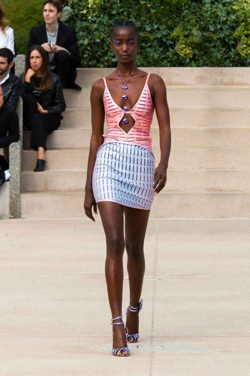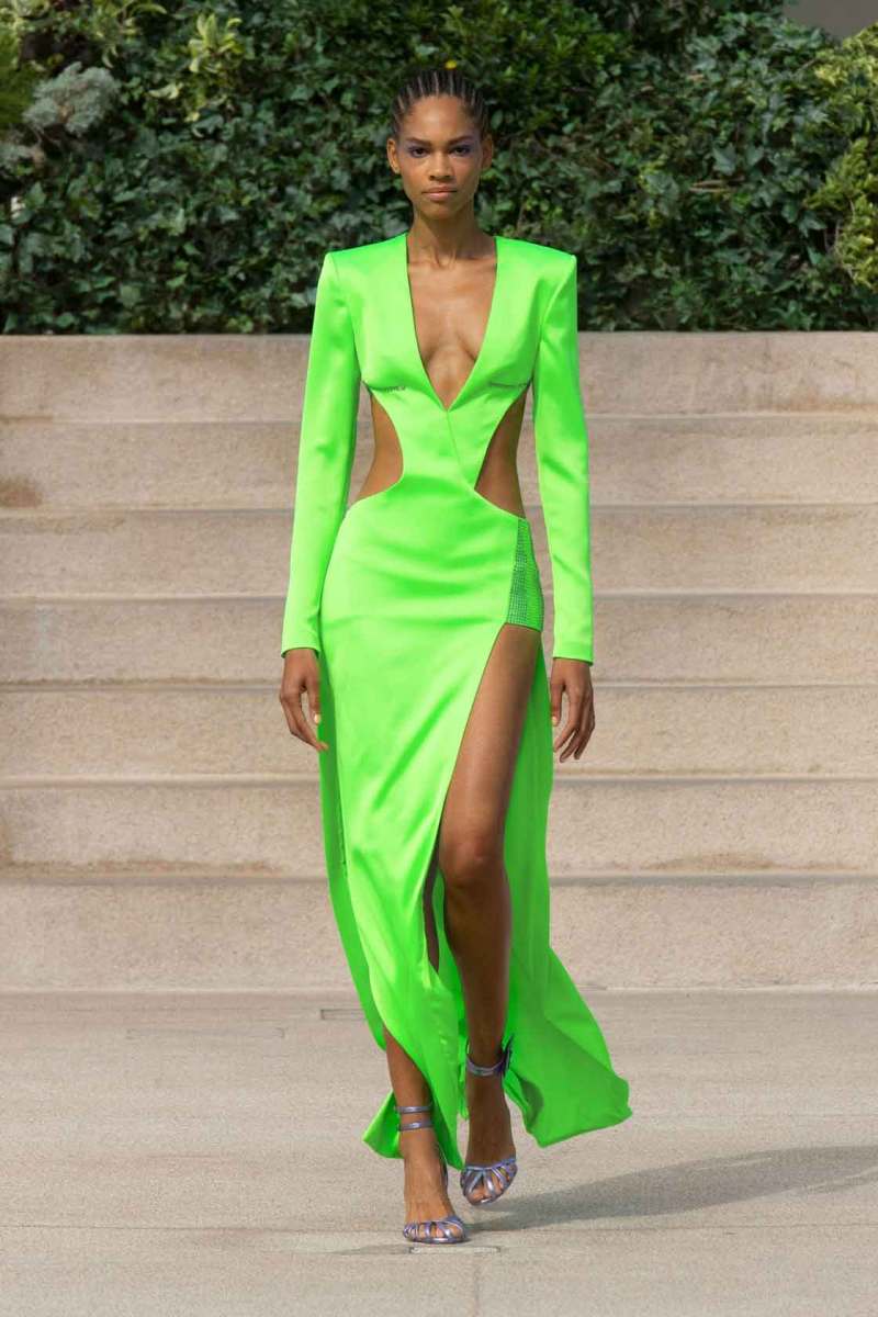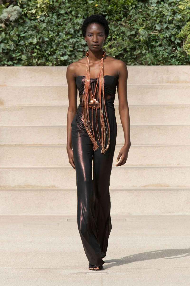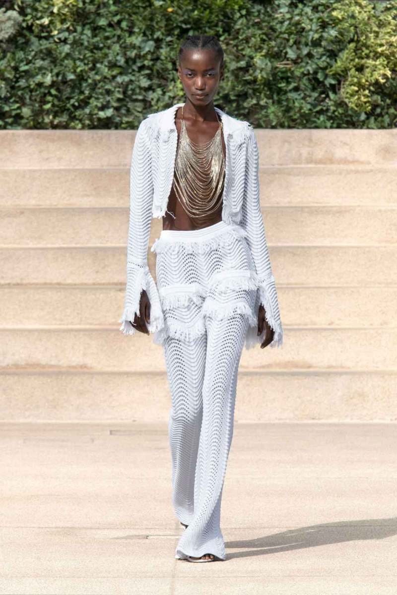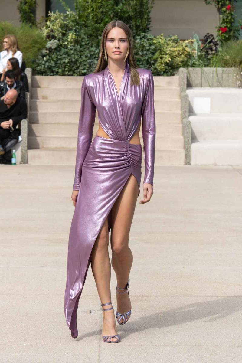 Una collezione all’insegna di una femminilità luminosa rappresentata da bluse, bustier e tailleur portati a pelle dalle modelle. Le camicie morbide e cangianti e le giacche chiuse da bottoni gioiello decorati da smalti hanno ripreso lo stile caro alla Maison. Ampio spazio a gonne midi e a long dress molto fluidi, ma anche a qualche longuette che ha esaltato i corpi con spacchi e aderenze