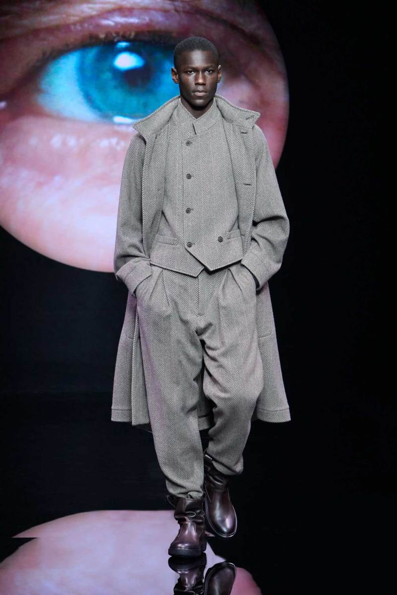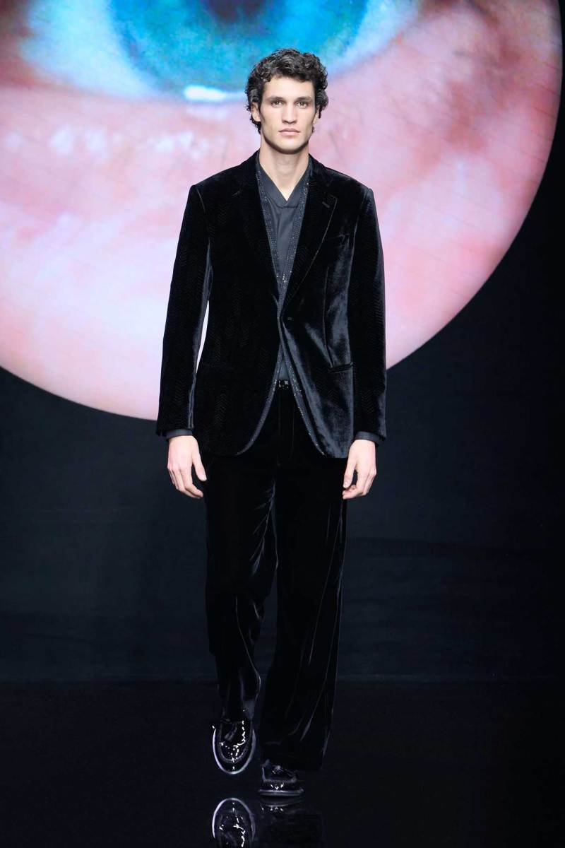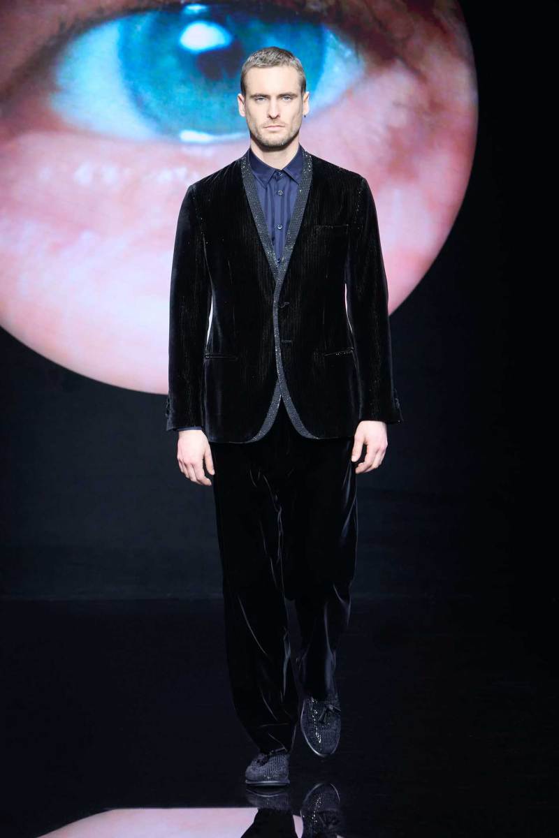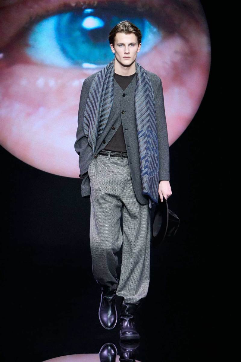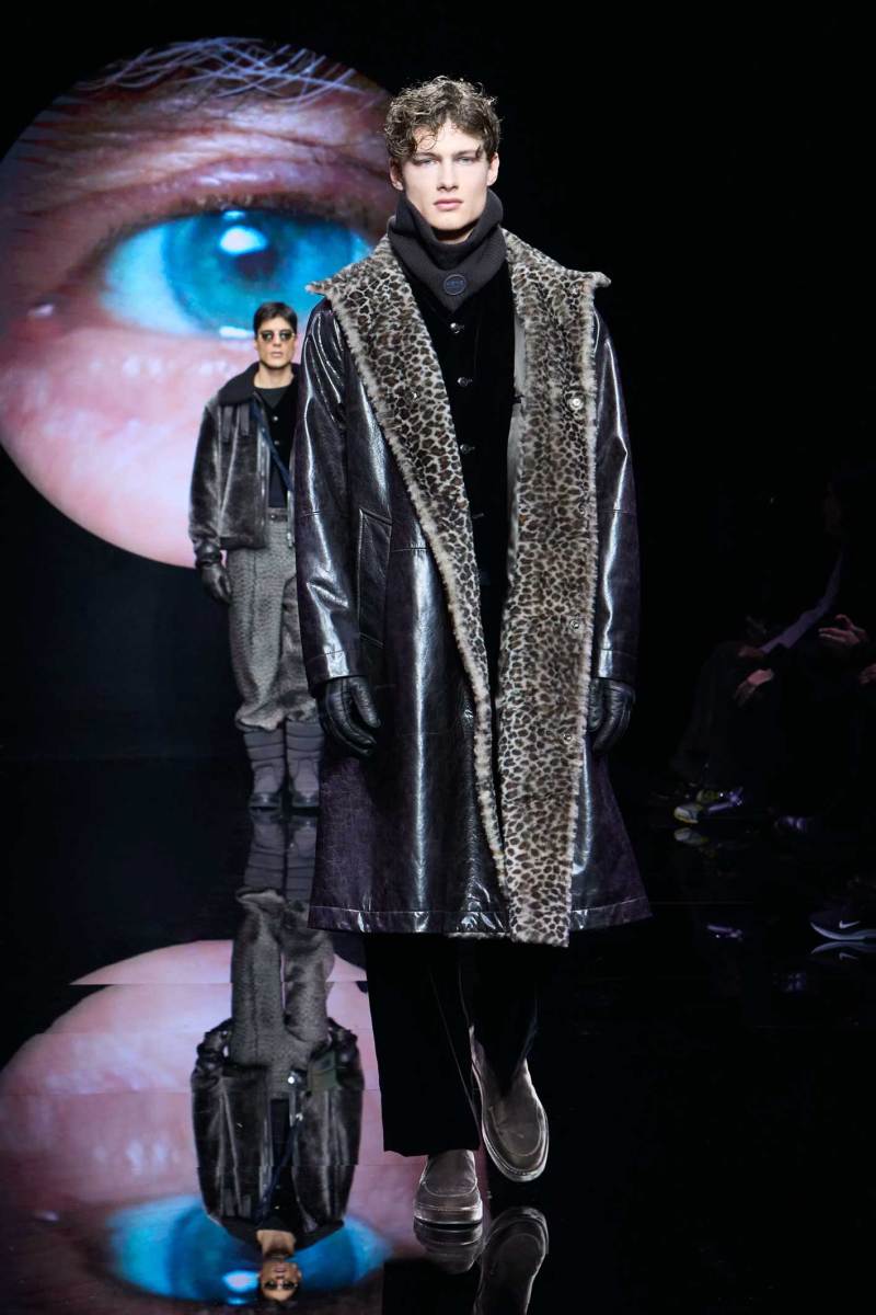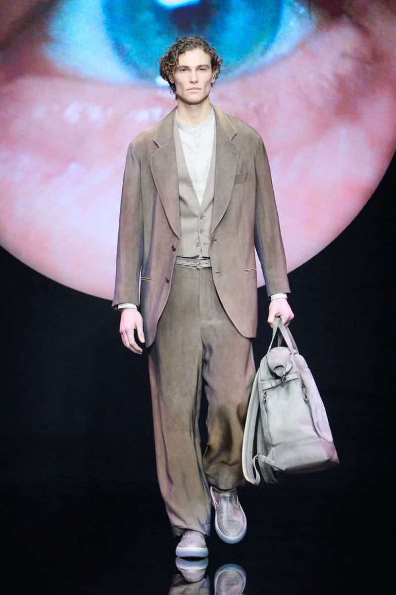 Non bisogna esagerare, ma bisogna pur sempre stupire lo spettatore, e Giorgio Armani sa come fare, mostrando inaspettatamente, in passerella, un look maculato. Dalle parole di Re Giorgio: “Non credo che la moda dell’uomo abbia bisogno di essere stravolta ogni stagione… il segreto è fare il consueto in maniera inconsueta”. Le fisicità dei modelli vengono avvolte con scioltezza.