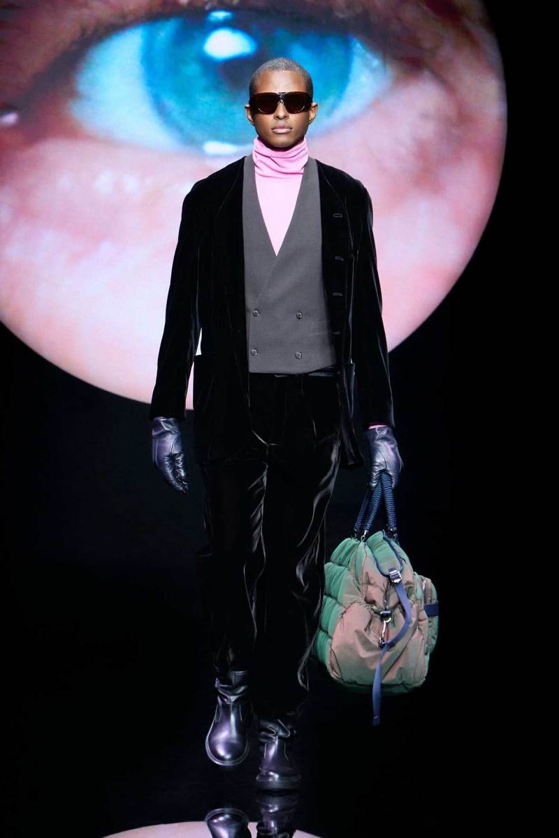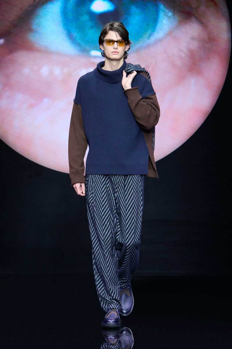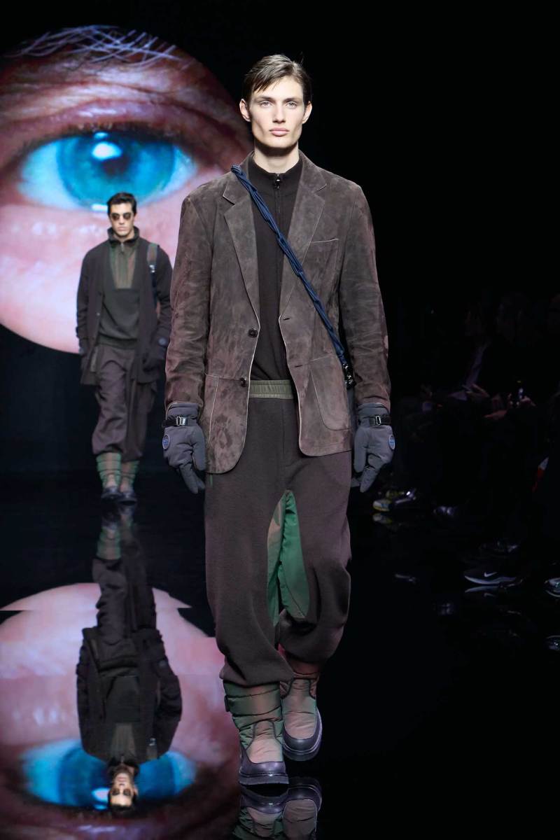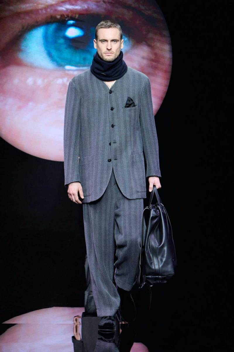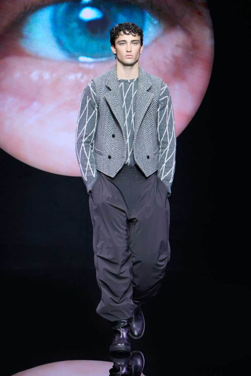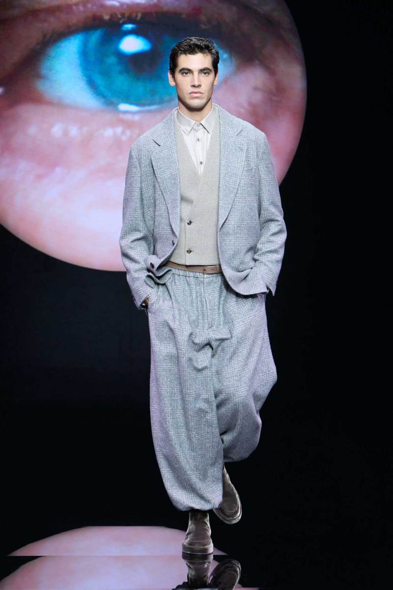 Non bisogna esagerare, ma bisogna pur sempre stupire lo spettatore, e Giorgio Armani sa come fare, mostrando inaspettatamente, in passerella, un look maculato. Dalle parole di Re Giorgio: “Non credo che la moda dell’uomo abbia bisogno di essere stravolta ogni stagione… il segreto è fare il consueto in maniera inconsueta”. Le fisicità dei modelli vengono avvolte con scioltezza.