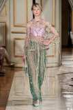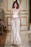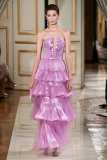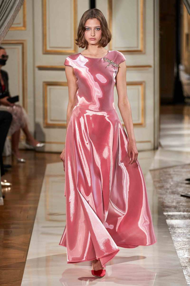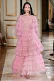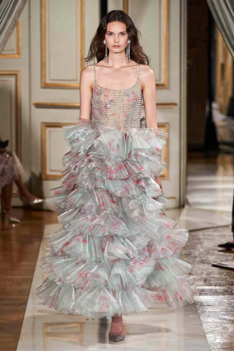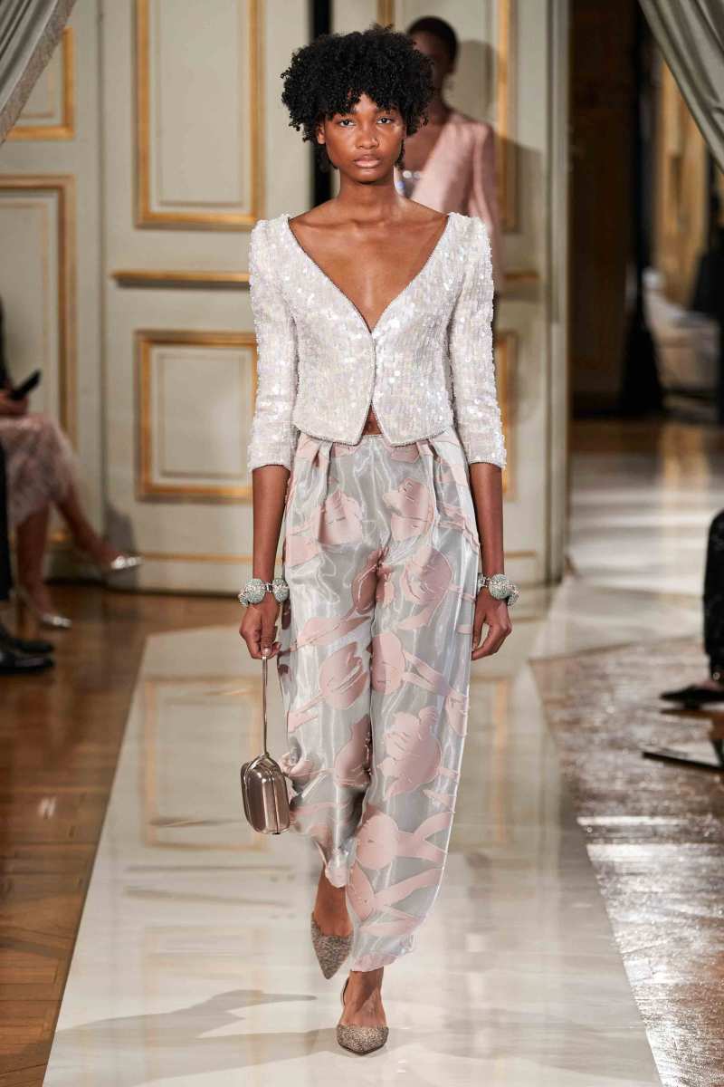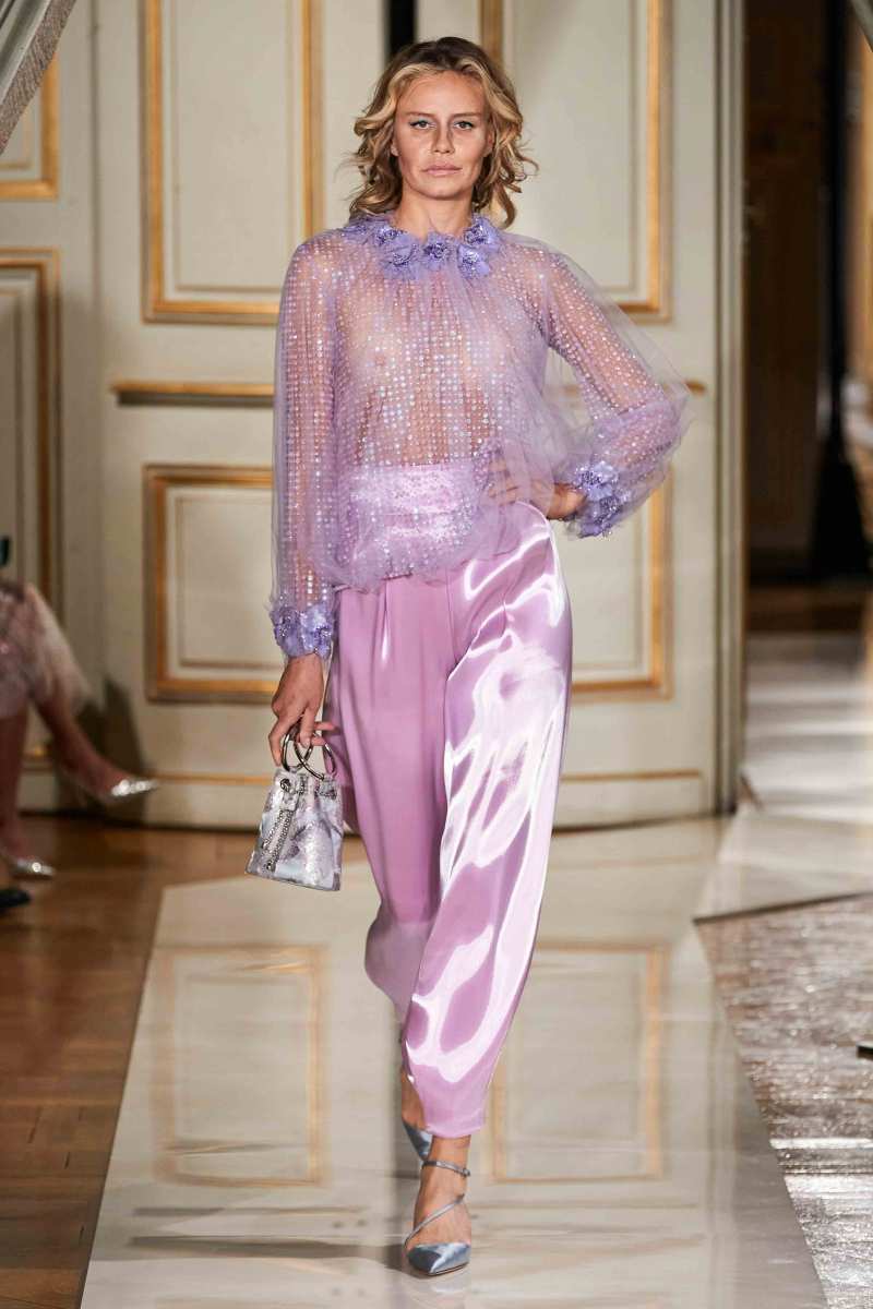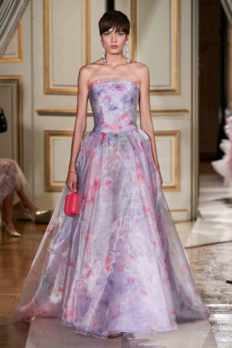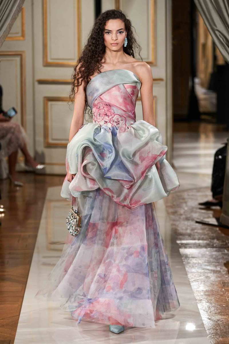 In questo contesto insolito vediamo sfilare abiti altrettanto inusuali, caratterizzati da colori che non spesso si vedono in passerella, ovvero colori pastello e tenui ma al tempo stesso brillanti, che spaziano da tonalità come il verde, il malva, il fiordaliso, l’ardesia e l’indaco, fino a una gamma di rosa.
