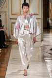 Giorgio Armani, nella realizzazione di questa collezione, si è sbizzarrito anche nella scelta dei tessuti, utilizzando molto il velluto, il raso, le paillettes e il tweed con fili lamé. Tutto con l’obiettivo finale di ricreare un gioco di luci e brillantezza durante la presentazione degli abiti.