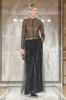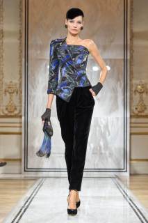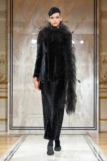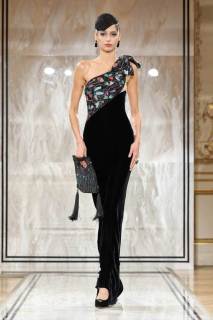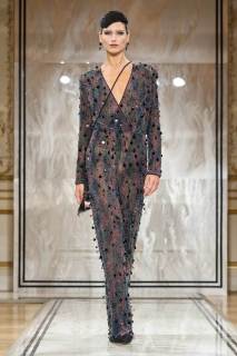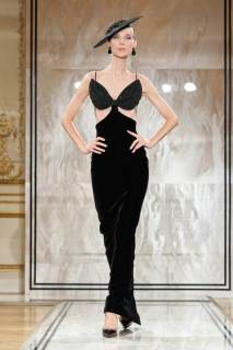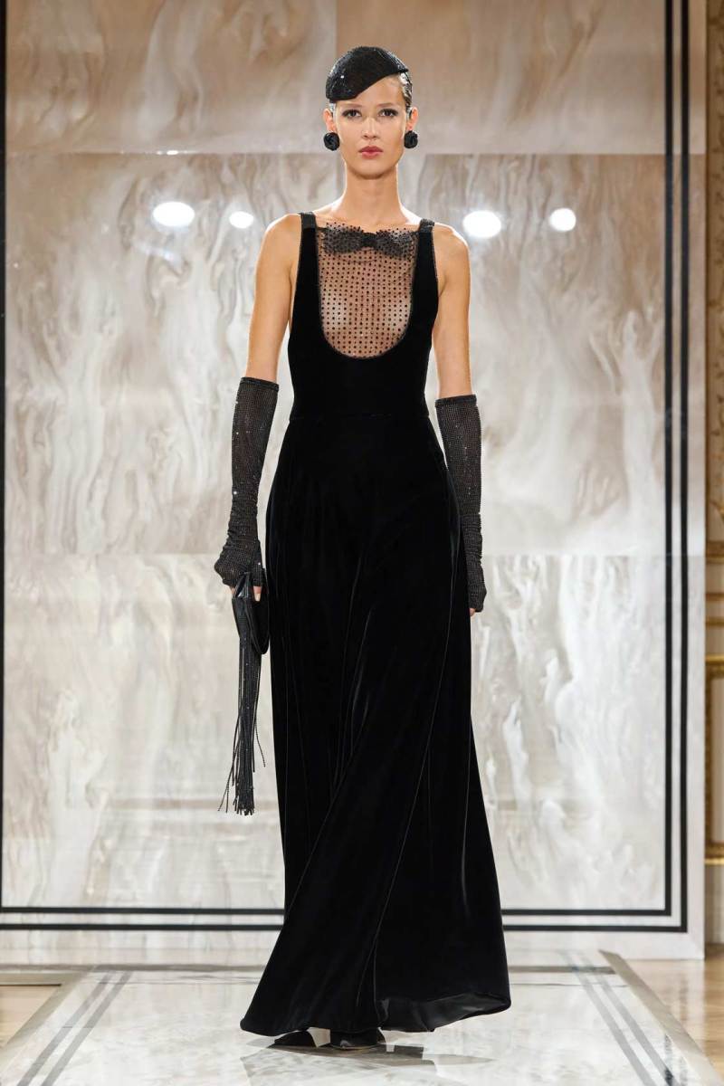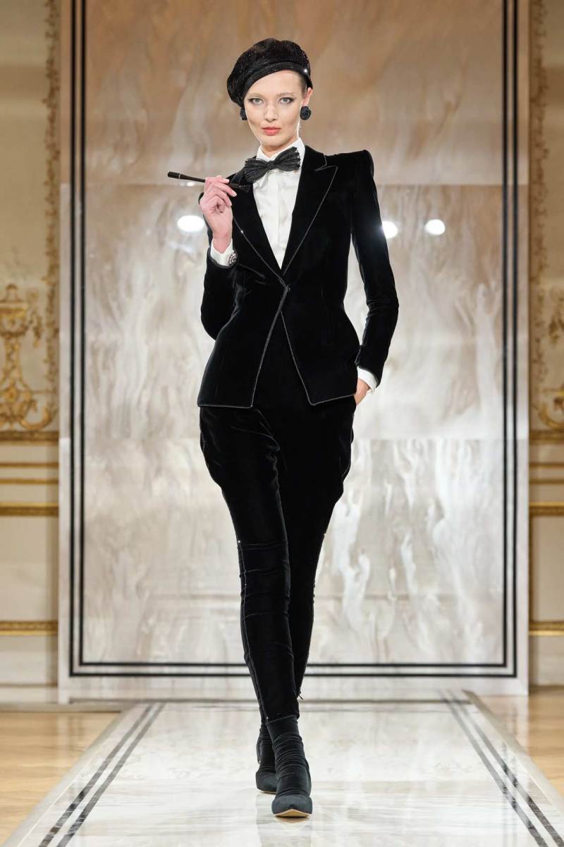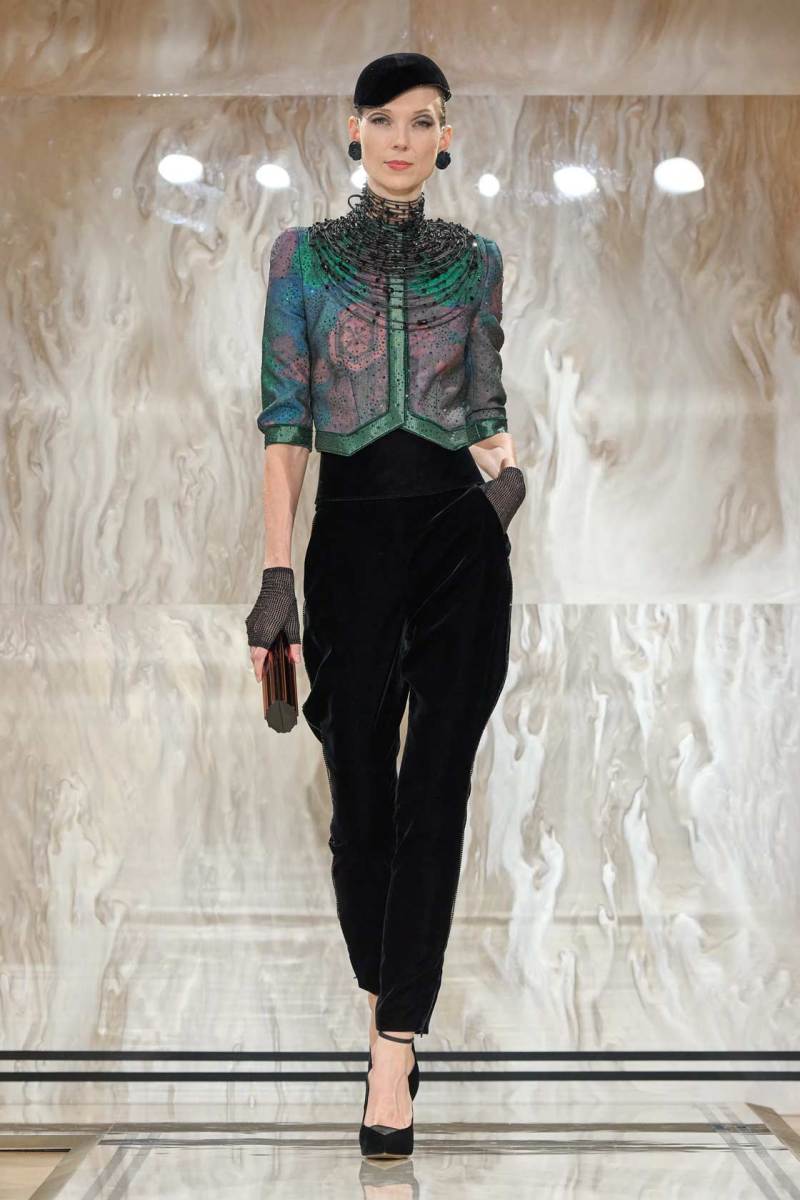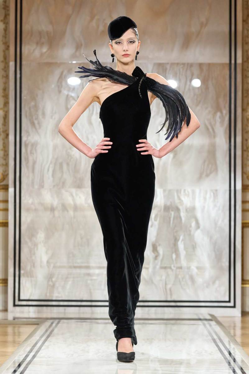 In scena a Parigi, nella cornice della Haute Couture, la collezione è un omaggio alla complessità del nero, che da codice classico si trasforma in linguaggio emotivo. Qui il nero non è mai assenza, ma presenza sfaccettata, materia viva, superficie da cui affiorano bagliori e contrasti. Una sfida che Giorgio Armani affronta con la precisione di chi sa che «lavorare con il nero significa non poter sbagliare», perché ogni imperfezione si amplifica, ogni taglio racconta.