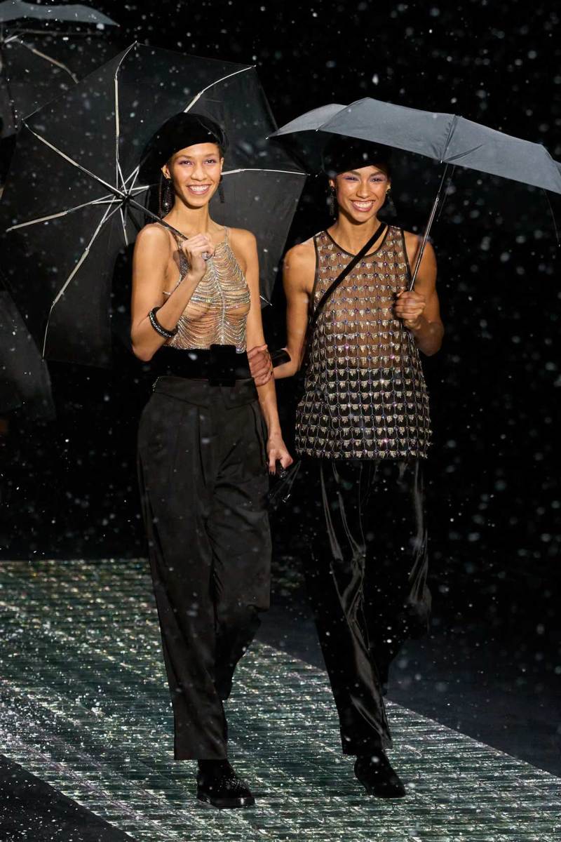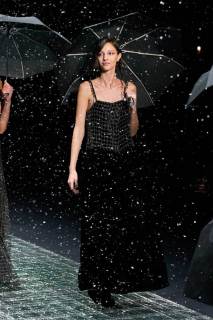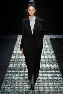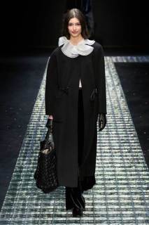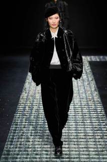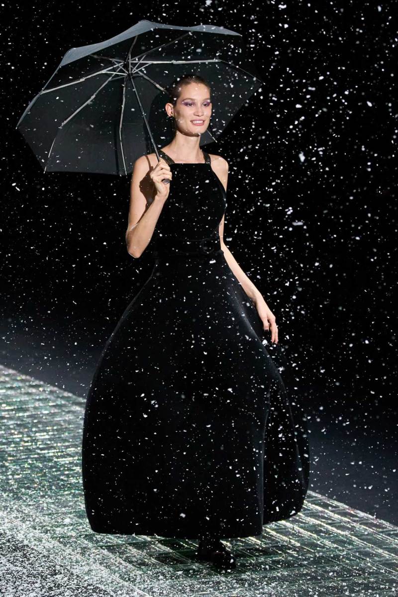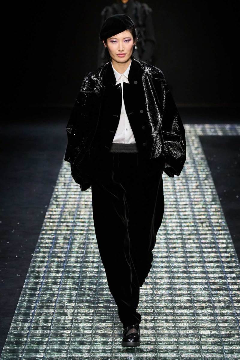 Nella prima parte della sfilata spiccano abiti più mascolini e pratici, tra cui completi, cappotti, giacche; più avanti si lascia spazio agli abiti da sera eleganti, luccicanti, neri. Tra i colori protagonisti, il grigio antracite e il grigio perla, il blu in varie sfumature, ma anche tocchi di colore. Immancabile il nero, che non risulta cupo e triste poiché si illumina di stelle, lune e decorazioni in argento.