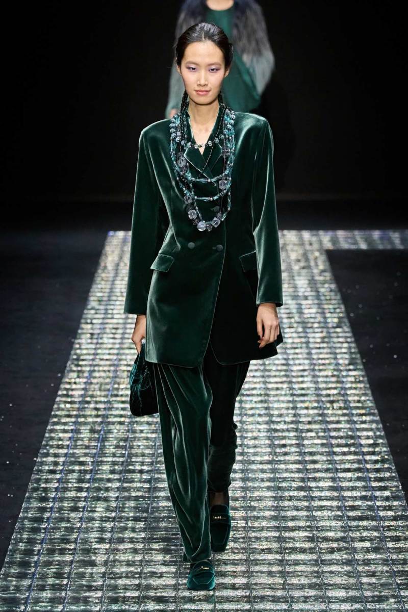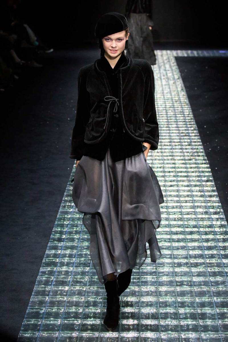 In passerella, oltre ai protagonisti della “notte stellata”, capi da tutti i giorni più versatili, tra cui tailleur composti da giacca e pantaloni in velluto verde, giacche lunghe, giubbotti di pelliccia ecologica, giacche in seta, cappotti ampi e avvolgenti, tute, gilet. Secondo Re Giorgio è inutile portare in scena troppa eccentricità, vestiti difficili quasi impossibili da portare e indossare; meglio invece optare per qualcosa di originale, particolare, ma che non risulti mai esagerato.