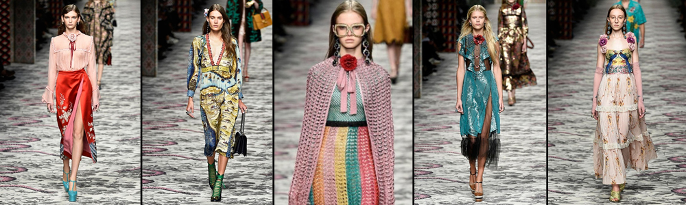 La collezione primavera/estate 2016 firmata Gucci si veste di emozioni, sensazioni e miscele del nostro subconscio per regalarci ancora una volta uno show sorprendente. Elemento chiave della passerella è un simbolo curioso, che attrae lo spettatore con la stessa potenza ammaliatrice con la quale lo respinge: il serpente, un animale dai profondi significati mistici, che grazie alla sua implicita sensualità ottiene un effetto ipnotico sullo spettatore. Passerella e abiti, quindi, si ritrovano tempestati delle immagini di questo seducente animale, che risveglia nell’animo umano sentimenti nascosti.
