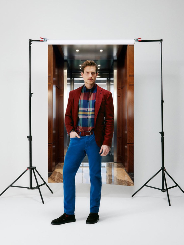 Un guardaroba colorato, seducente, raffinato, cool e gioioso che si basa su comfort, praticità e leggerezza. I materiali utilizzati nella progettazione dei nuovi articoli sono il cotone, il lino, il cashmere, la lana pregiata ma anche il velluto e il fustagno; la palette colori vira sui toni sofisticati del beige, acquamarina e bianco, nuances che richiamano l’eleganza senza tempo del brand, così come quell’essenzialità sofisticata tanto cara da sempre ad Harmont & Blaine. L’articolo più iconico che viene presentato, nonché quello più apprezzato dal pubblico, è sicuramente la maglia in lana merino dipinta a mano da esperti artigiani. In contrapposizione a questa semplicità, compaiono secondariamente capi tinti di giallo, rosso, ocra.