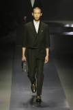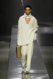 È un guardaroba maschile che infrange gli archetipi sartoriali, con una grande attenzione agli accessori e tonalità che vanno via via incupendosi, partendo dalla base di un morbido color panna, fino ad arrivare alla dominanza del nero.