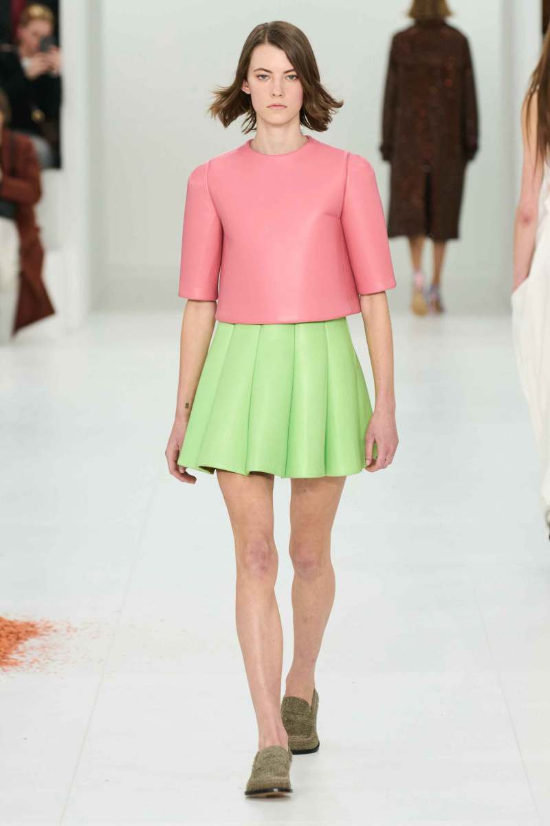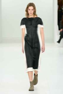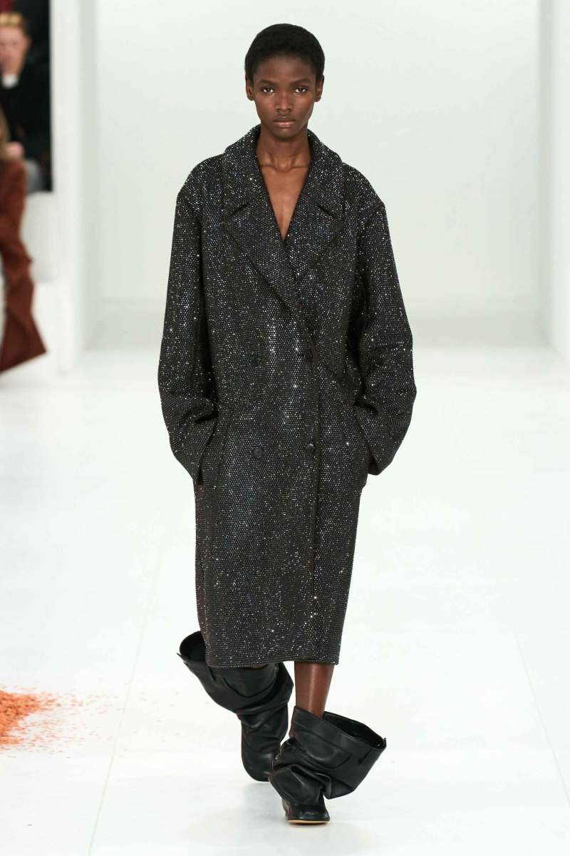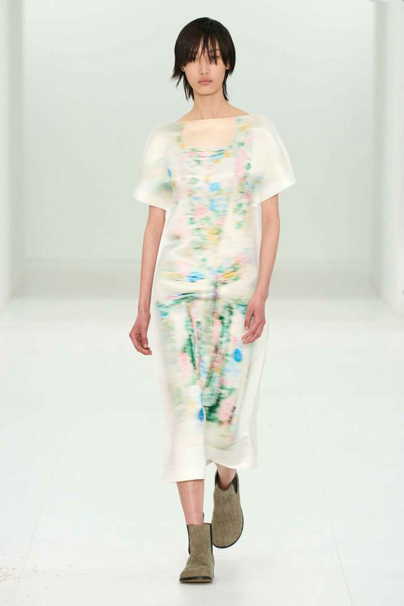 Il primo outfit ad aprire la sfilata è un maxi-abito con stampa sfocata. «Giocare con la sfocatura è un modo per sottolineare che la moda, anziché riguardare il presente, si concentra sul «dopo». Si tratta di mettere a fuoco ciò che può sembrare poco chiaro in questo preciso istante», spiega Anderson dopo il défilé. Nascono così creazioni trompe-l’oeil ‘fantasma’. Dagli abiti ai trench, fino ai cappotti di pelliccia, tutto si riduce a un’impressione, a un ricordo che ritorna.
