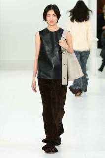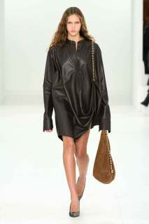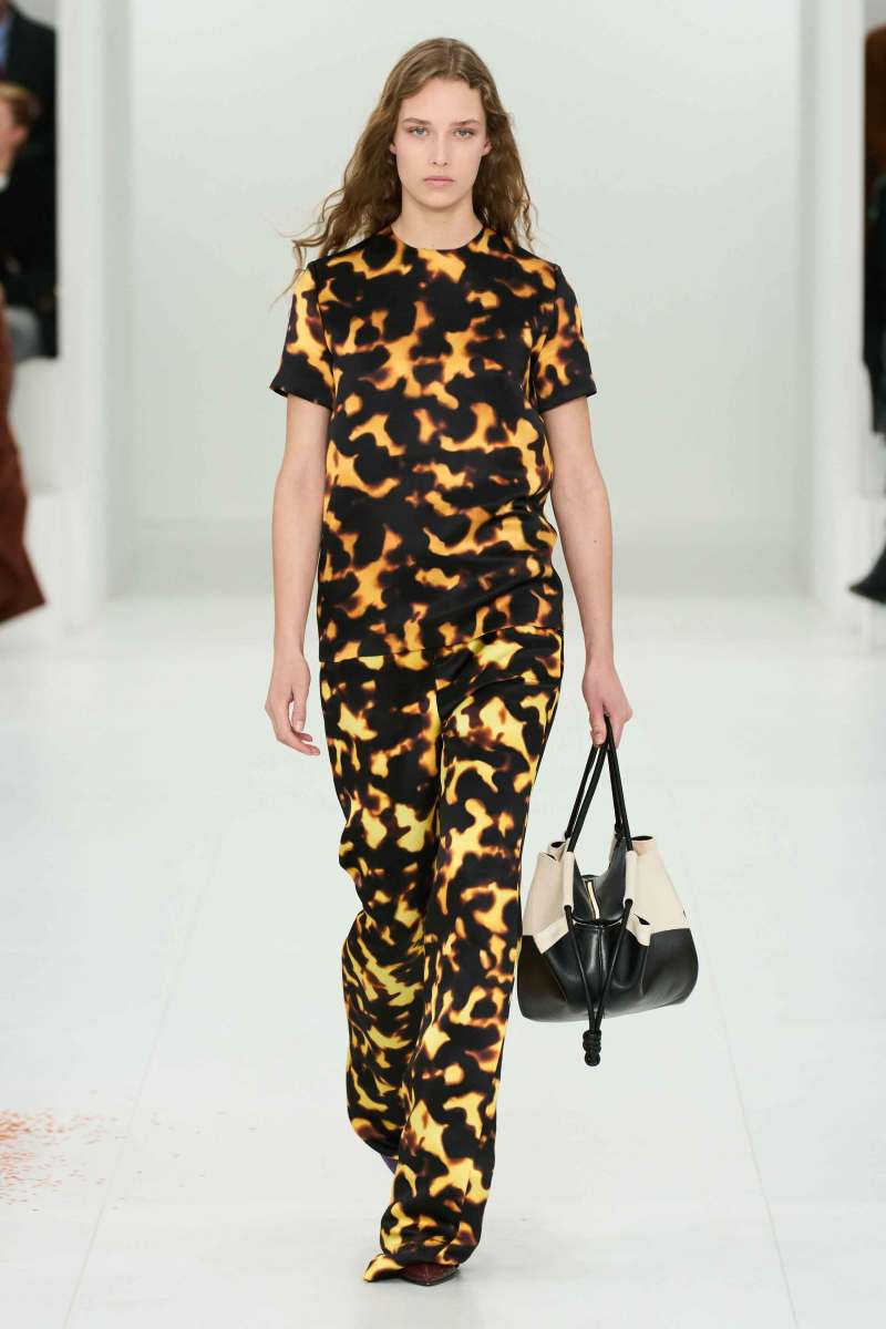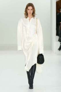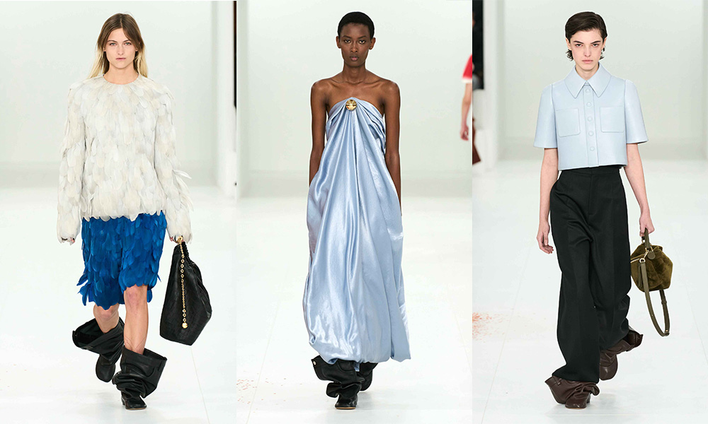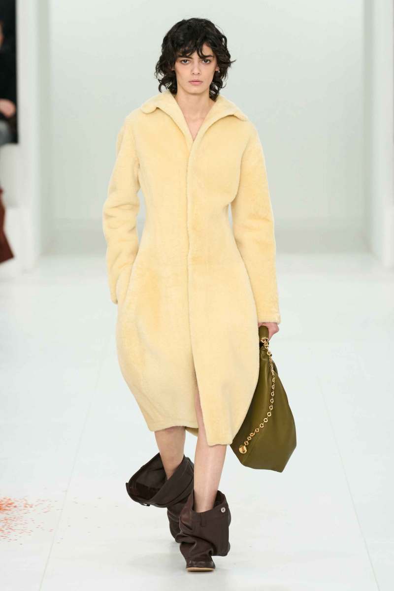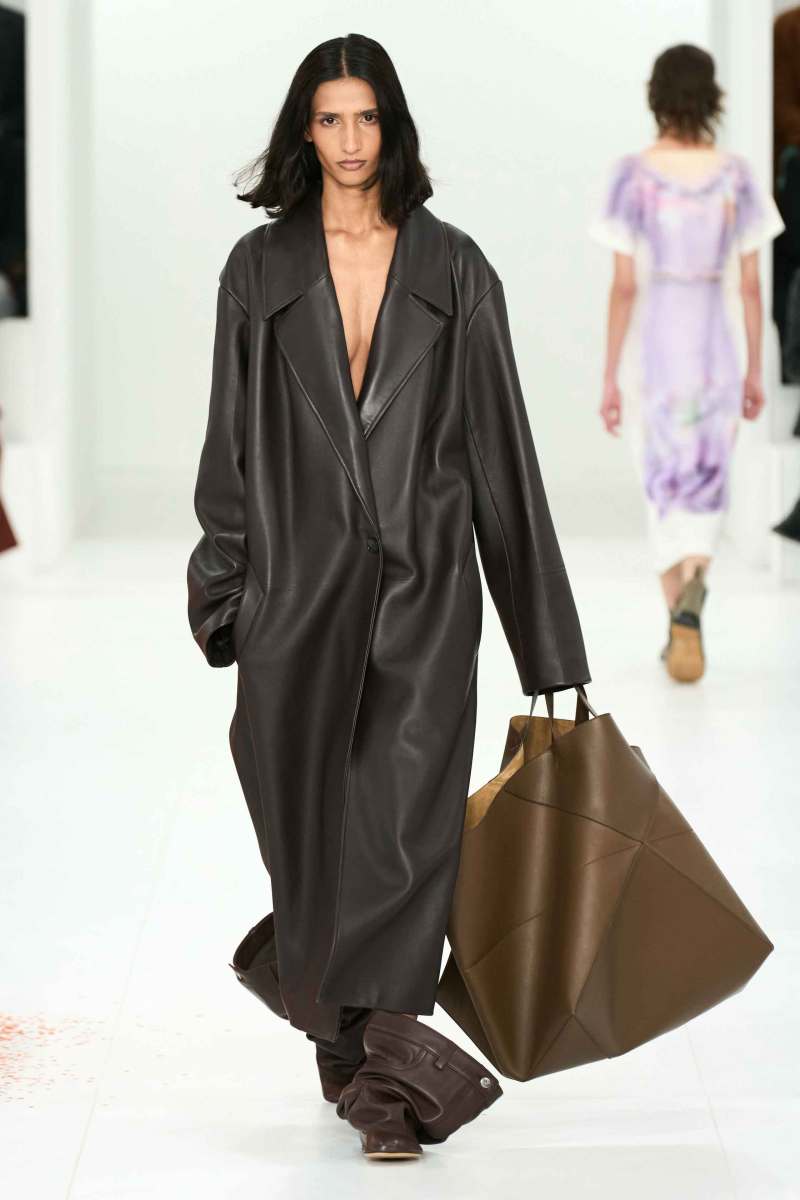 Un pezzo che rimarrà sicuramente impresso è la giacca in pelle in color carta da zucchero, senza cucitura e dallo stile cartoon. Tutte queste proposte sono accompagnate da stivaletti, sandali, mocassini in felpa e stivali con volume ai polpacci che sono diventati i re della sfilata. Oltre alla maxi Tote Puzzle, e la Paseo, viene introdotta la borsa Squeeze, over e in morbidissima pelle, un manico squishy e un dettaglio con catena a ciambella.