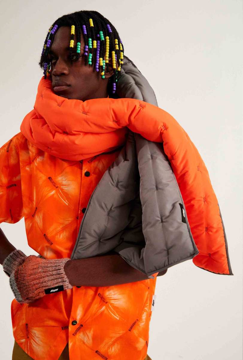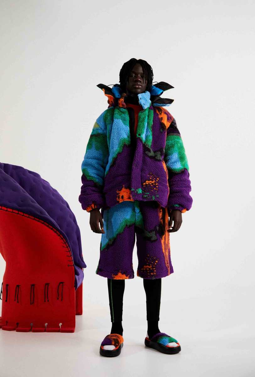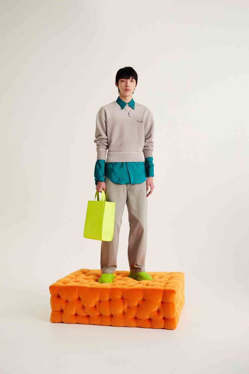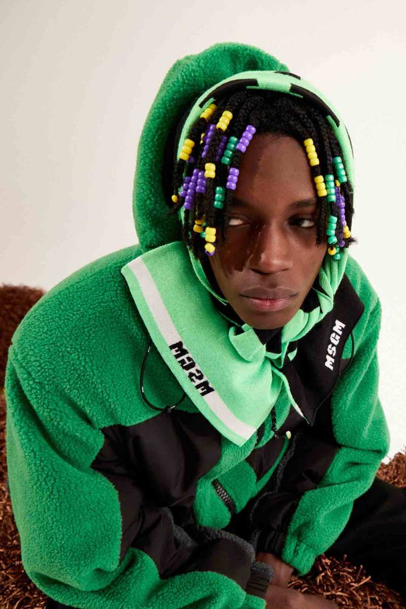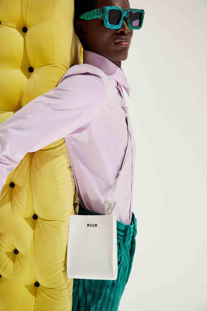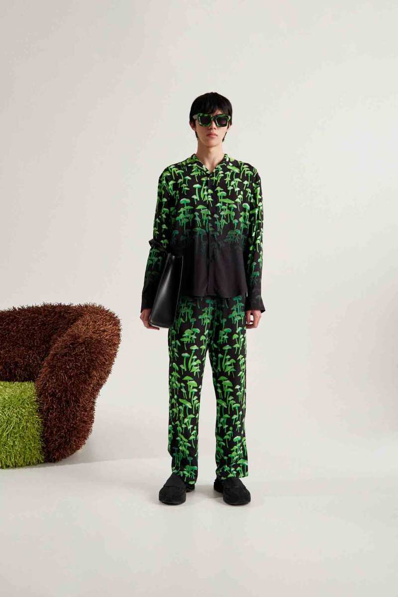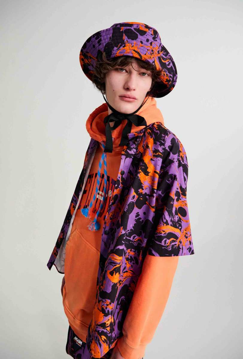 I capisaldi dell’abbigliamento MSGM ci sono tutti, segnati da una più netta ispirazione agli anni ‘90, che si percepisce anche dalla presentazione digitale di Luke Abby. Le impunture del divano Michetta sono finite su piumini e bermuda; camicie, maglieria e bomber effetto Teddy si tingono come i vasi in resina proposti da Pesce, nati appunto negli anni ‘90. Le tonalità più intense dei viola, azzurri, verdi, arancioni e rosa ci conducono in un viaggio psichedelico che sembra frutto dei funghetti allucinogeni raffigurati su maglie e suit.