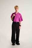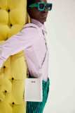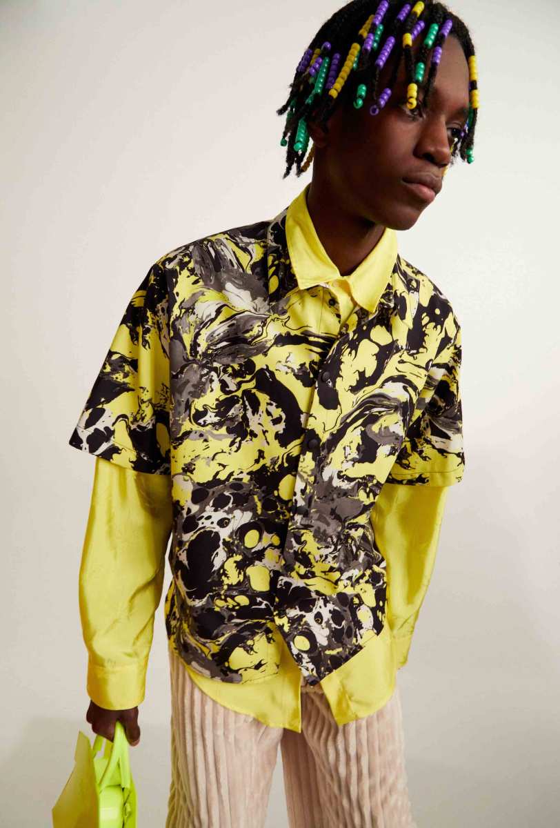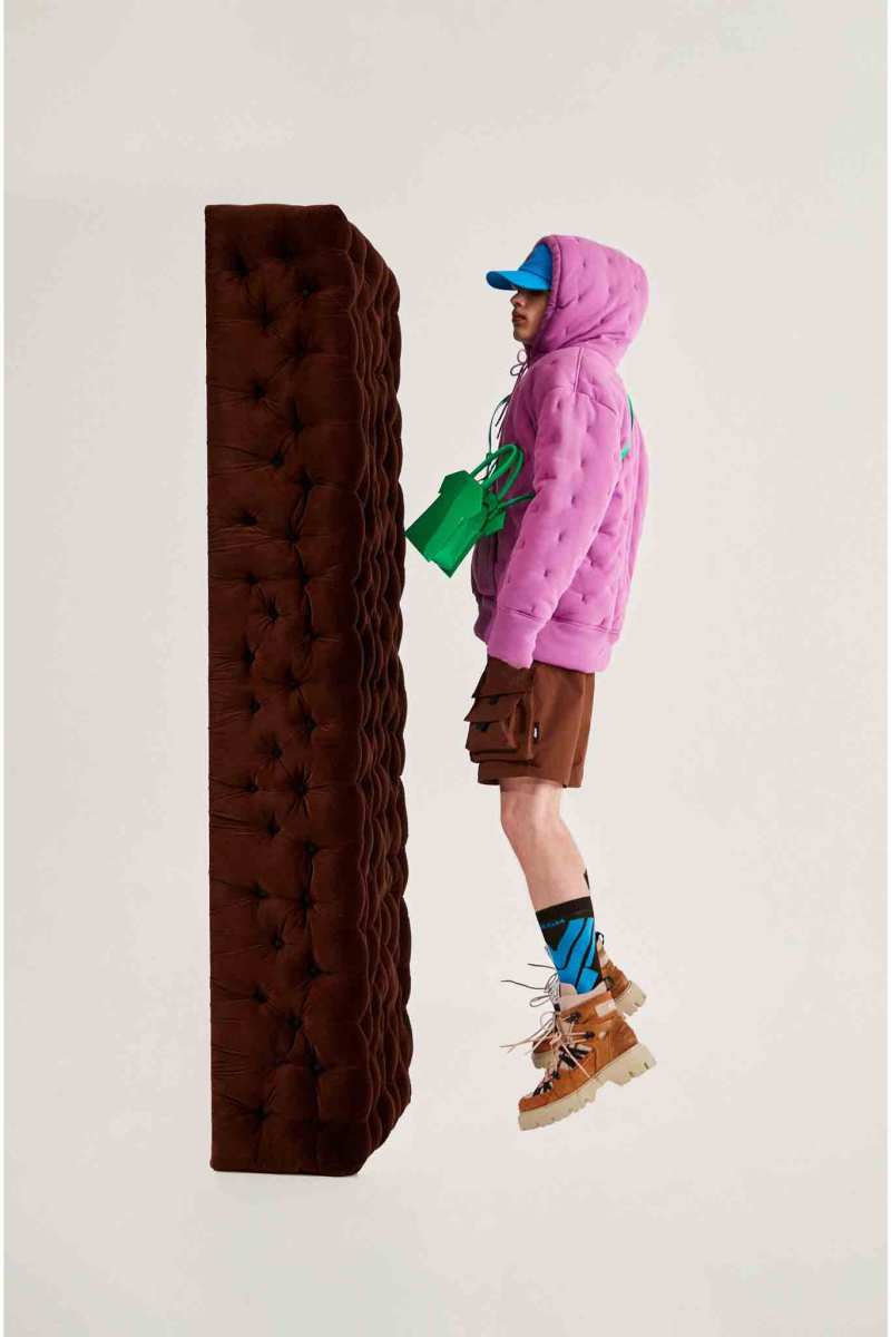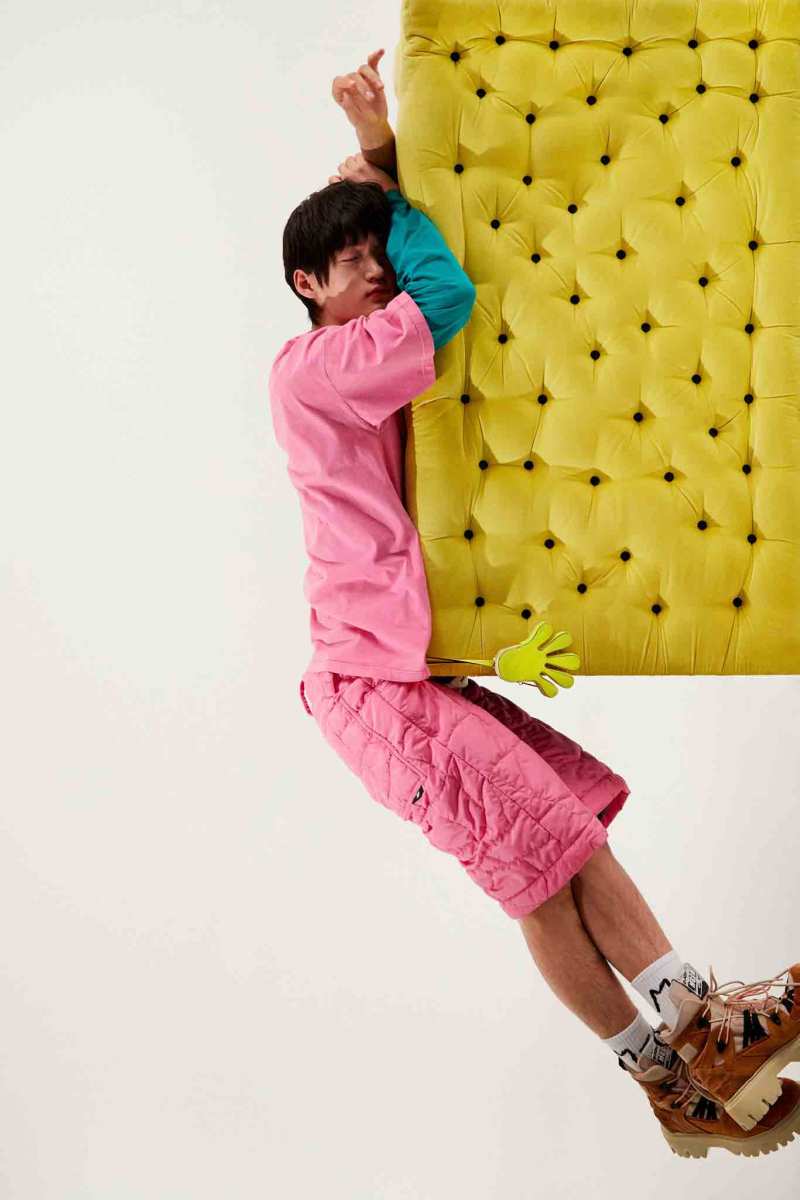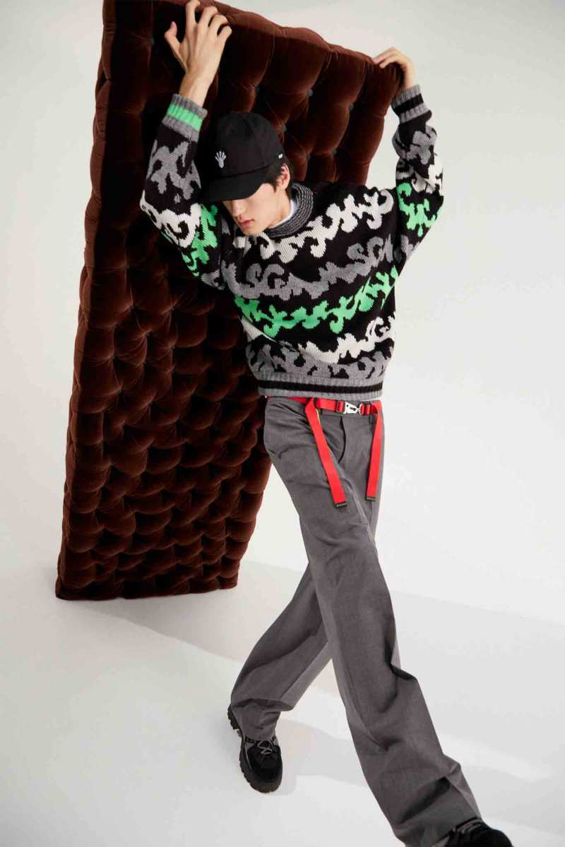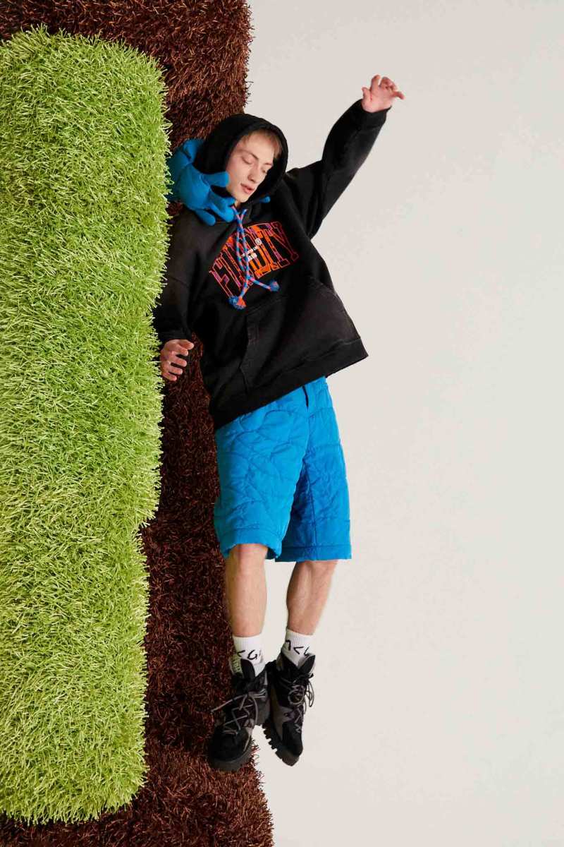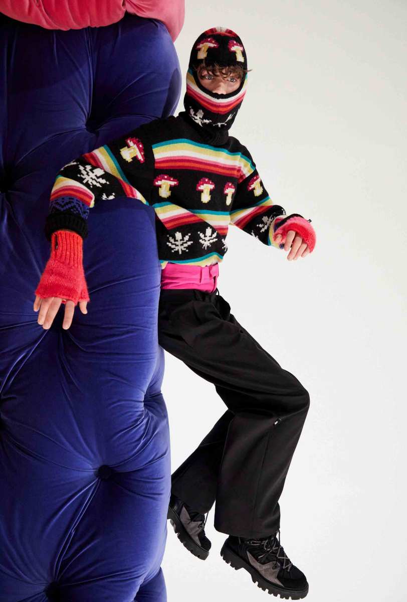 I capisaldi dell’abbigliamento MSGM ci sono tutti, segnati da una più netta ispirazione agli anni ‘90, che si percepisce anche dalla presentazione digitale di Luke Abby. Le impunture del divano Michetta sono finite su piumini e bermuda; camicie, maglieria e bomber effetto Teddy si tingono come i vasi in resina proposti da Pesce, nati appunto negli anni ‘90. Le tonalità più intense dei viola, azzurri, verdi, arancioni e rosa ci conducono in un viaggio psichedelico che sembra frutto dei funghetti allucinogeni raffigurati su maglie e suit.