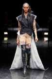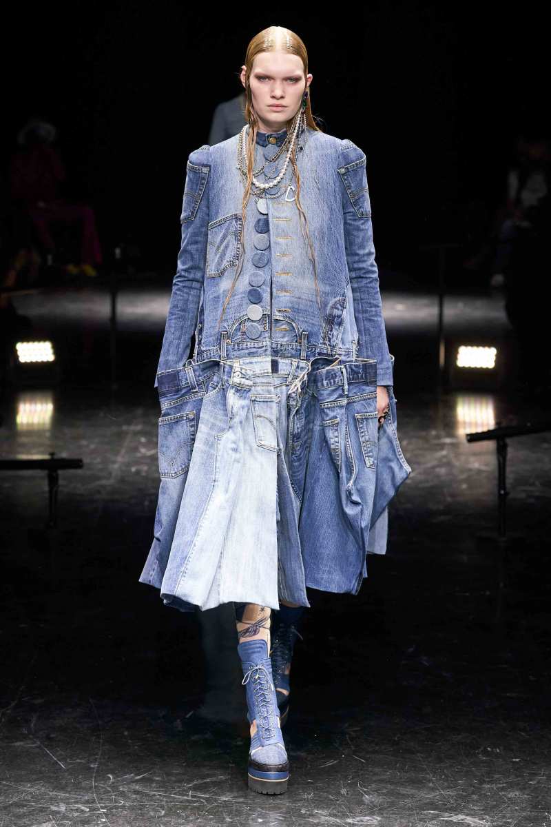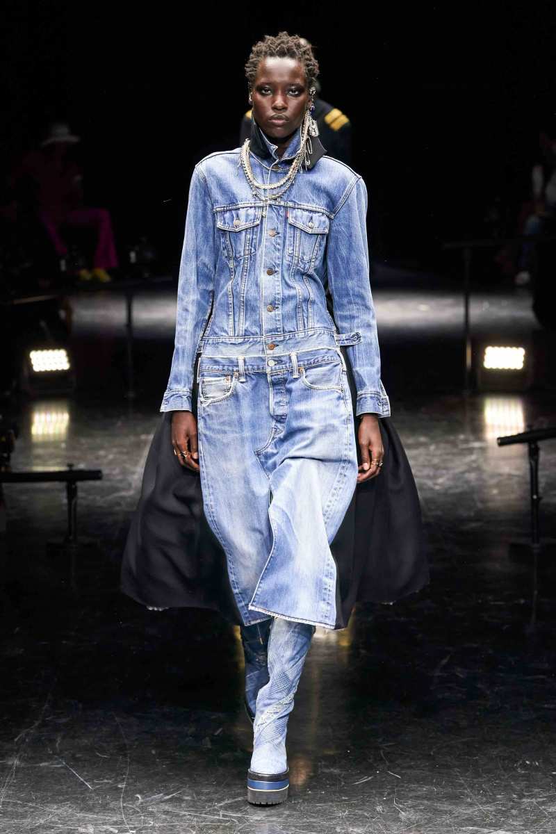 Durante il fashion show sono stati presentati 32 outfit. I colori predominanti sono il blu, il nero, il bianco, il panna e dei tocchi di rosso, giallo, azzurro e verde. Abe si è servita molto del denim riutilizzando vecchi Levi’s e applicandoli come strascico.