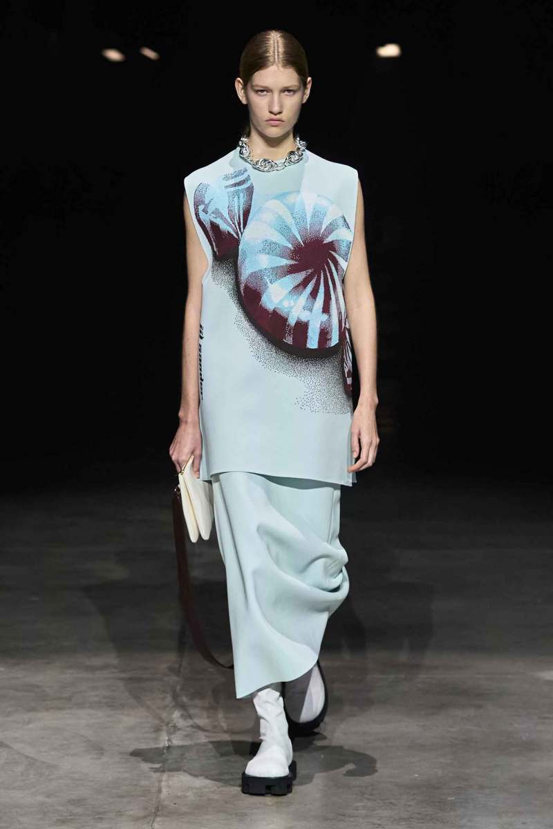 Sullo sfondo della canzone d’amore “All Neon Like” di Bjork, Jil Sander presenta la sua nuova collezione co-ed Donna e Uomo firmata Lucie e Luke Meier, che ormai dirigono da cinque anni il marchio. Ciò che subito appare evidente guardando lo sfilare degli abiti è il tentativo di annullare le differenze di stili e di generi: nei capi uomo le gonne si sovrappongono a pantaloni e i tagli sono over.