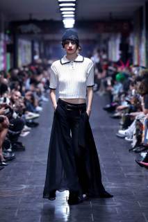 A fare da sfondo alla nuova collezione, il sottopassaggio della metropolitana della stazione De Angeli a Milano. Uno spazio urbano che si trasforma nella location perfetta per presentare e accogliere una passerella un po’ underground.