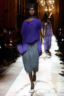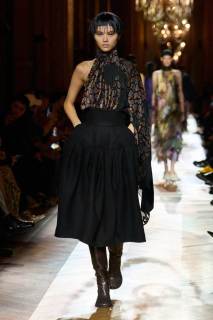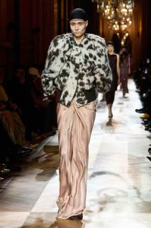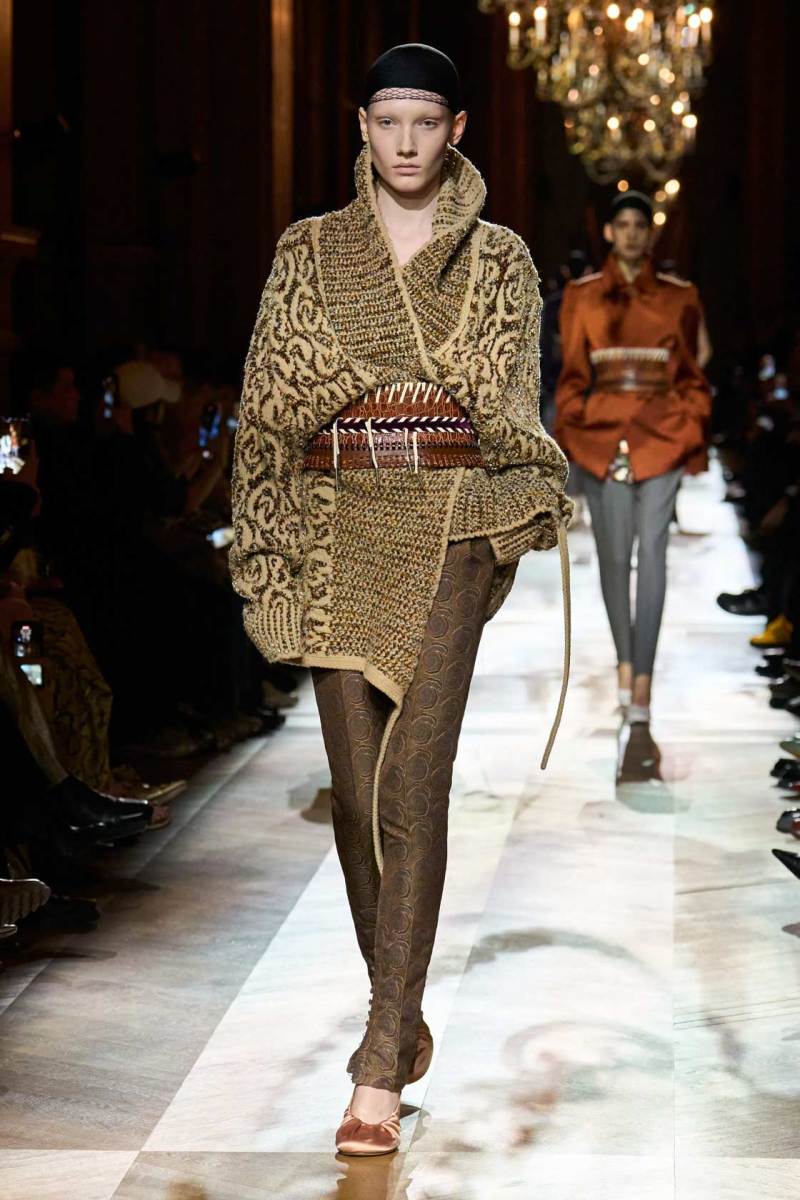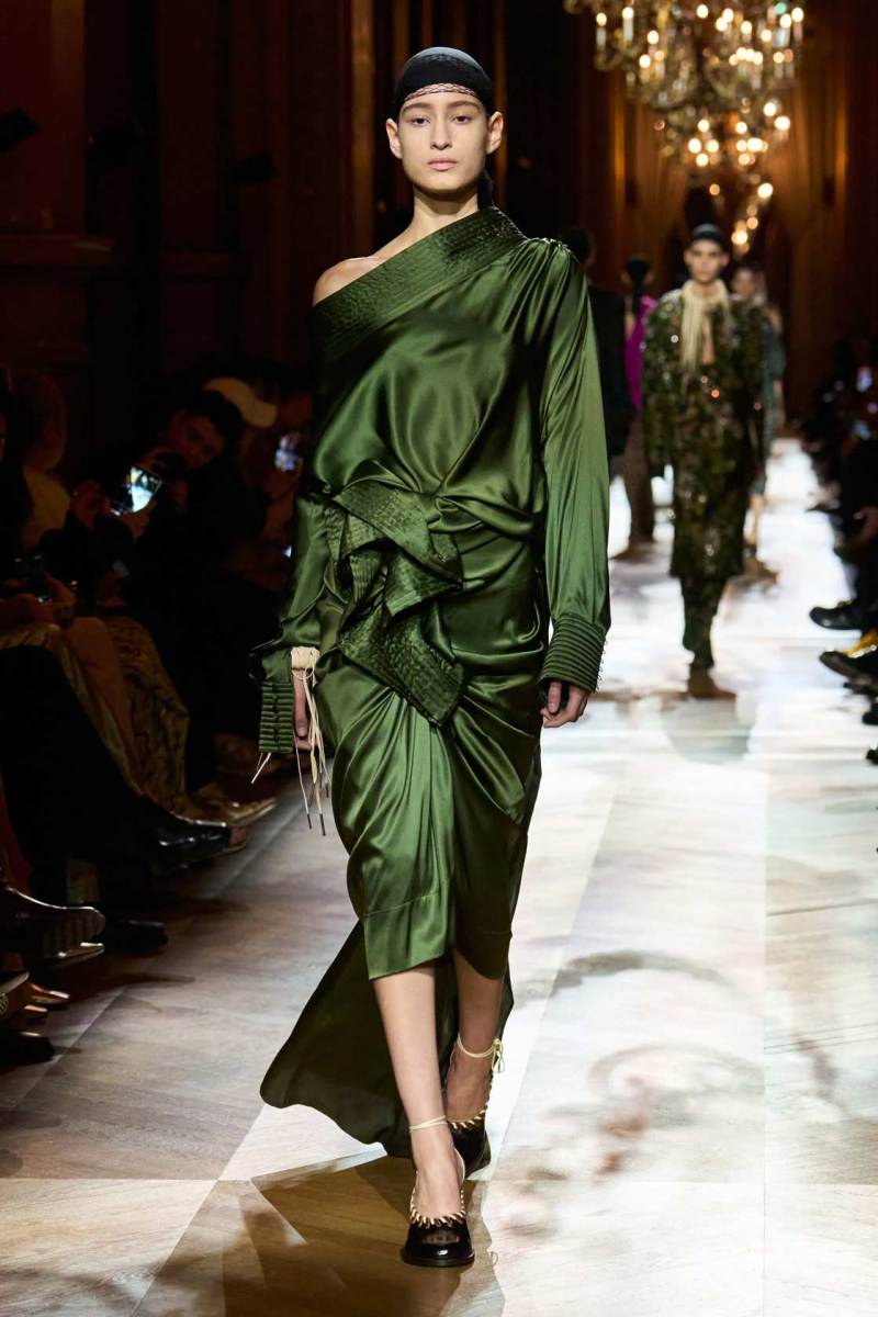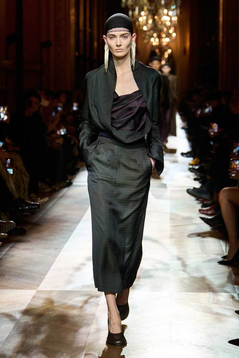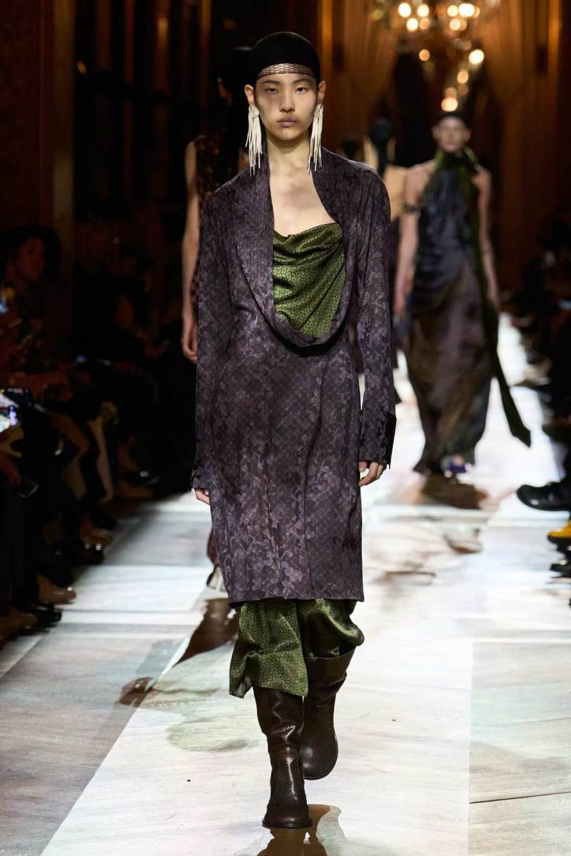Sulla passerella di Parigi, la collezione Autunno/Inverno 2025-26 ha mostrato chiaramente il filo conduttore tra la visione originale di Dries Van Noten e quella che Klausner vuole costruire. Le silhouette hanno mantenuto quell’eleganza destrutturata tipica della maison, con un approccio rilassato ma raffinato. Velluti morbidi, lane leggere e sete fluide si sono alternati a tessuti più tecnici, in una combinazione che rende omaggio alla sperimentazione materica di Van Noten.