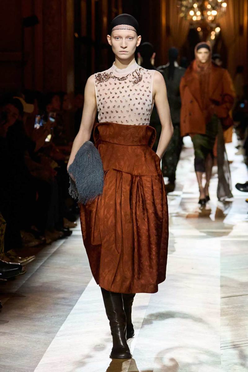 La domanda che aleggiava nell’aria prima della sfilata era inevitabile: cosa sarà di Dries Van Noten senza Dries Van Noten? La risposta, per ora, sembra essere rassicurante. Klausner ha dimostrato di comprendere a fondo l’anima del marchio e di saperla traghettare in una nuova fase senza snaturarla. Il suo è stato un debutto raffinato, senza eccessi o provocazioni, ma con una chiara dichiarazione d’intenti: la storia continua, con nuove sfumature e nuove prospettive.