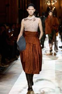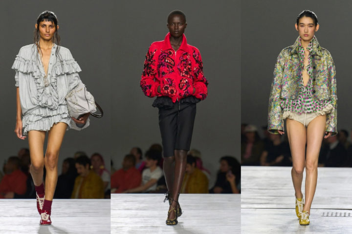 Il colore è sempre stato un elemento chiave del brand, e Klausner ha scelto di reinterpretarlo con una palette meno satura e più sofisticata. Toni neutri come beige, grigio e nero sono stati accesi da lampi di arancio bruciato, blu intenso e verdi bosco. E i motivi floreali, da sempre una firma della maison, sono stati trasformati in stampe più astratte e grafiche, quasi pennellate di colore su tessuto.