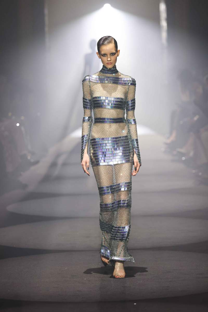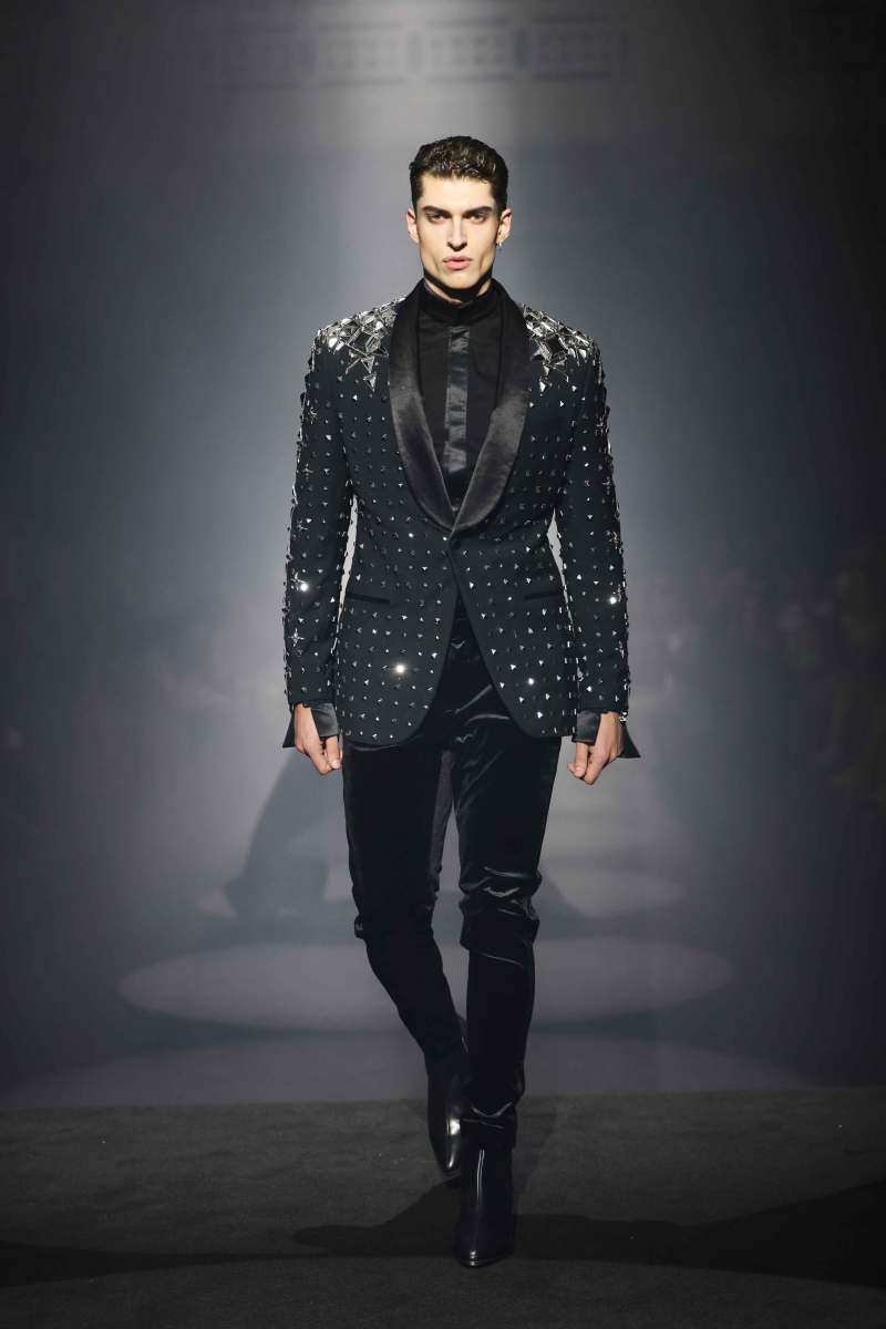 Julien Macdonald torna a sfilare alla LFW dopo tre anni di attesa presentando la sua nuova e luccicante collezione AI 2023-24