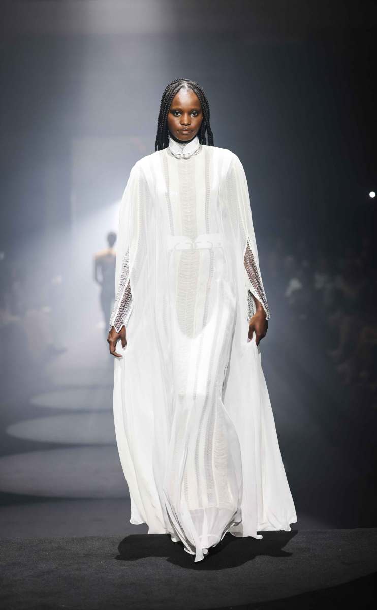 Lo spettacolo, che si è svolto alla Freemasons’ Hall di Holborn in una stanza che appariva piena di vapore, è iniziato con un gioco di luci e fin da subito sono piovuti gli applausi. La sfilata è stata accompagnata da grandi successi come Unholy di Kim Petras e Sam Smith, Break My Soul di Beyoncé, e dal tema musicale Renaissance di White Lotus. Gli abiti che hanno sfilato sono stati molto apprezzati, a giudicare dall’entusiasmo del pubblico: Julien Macdonald non si è smentito e ha fatto valere la pena della lunga attesa.