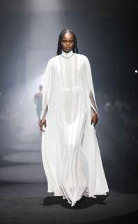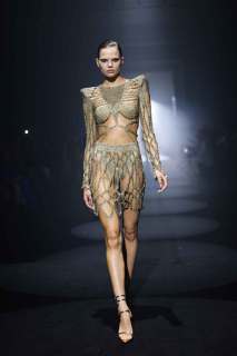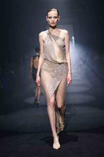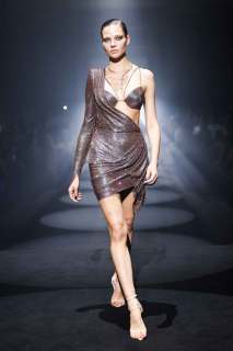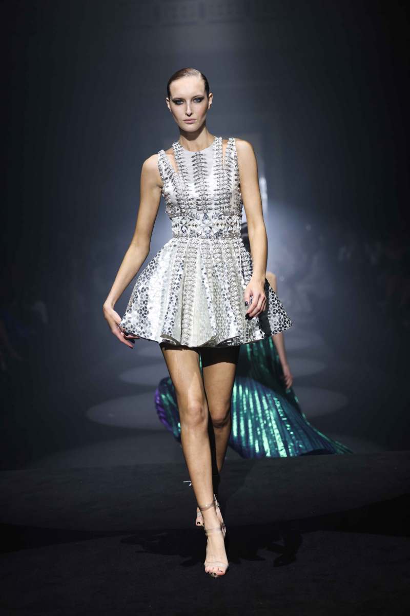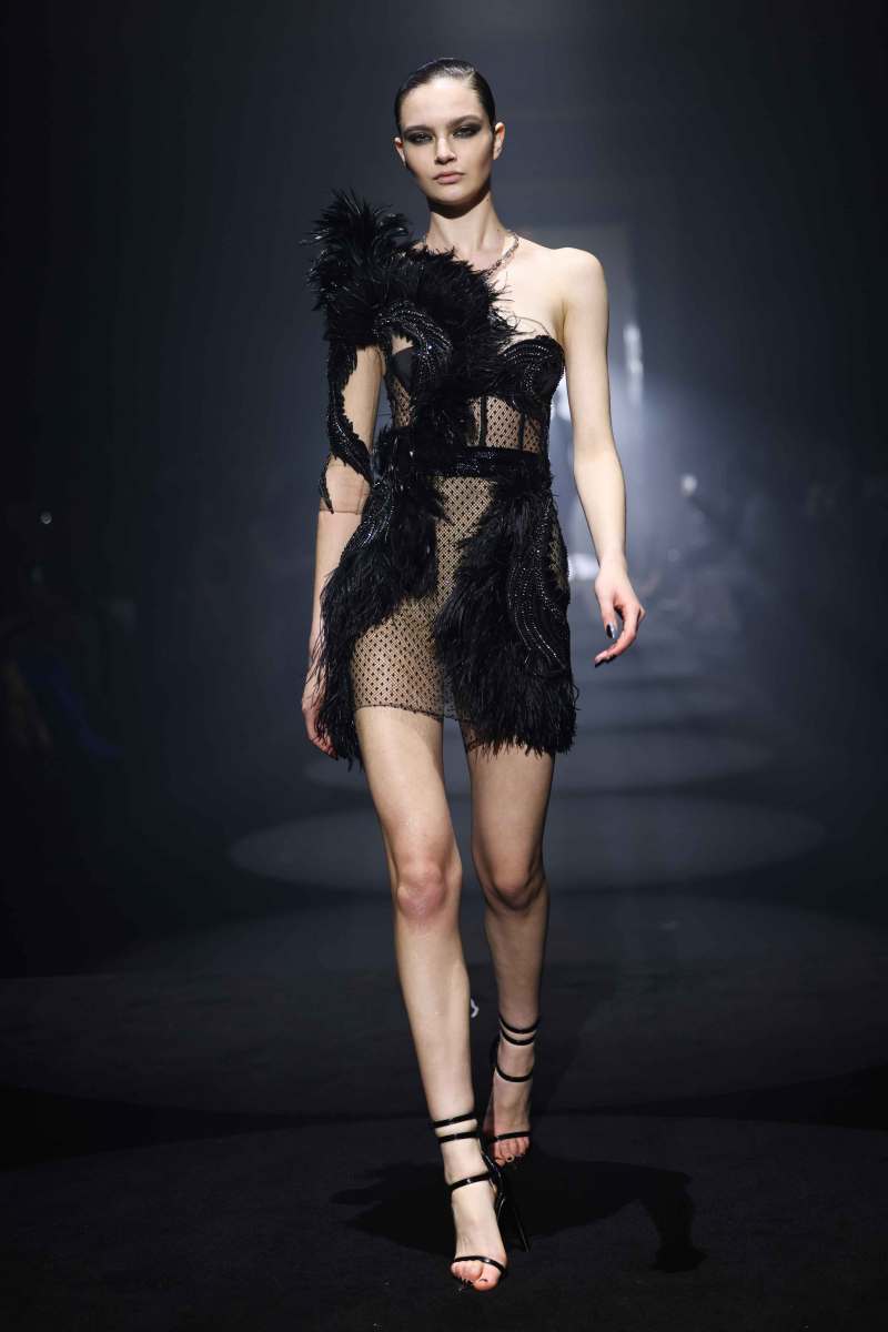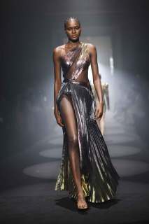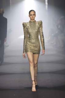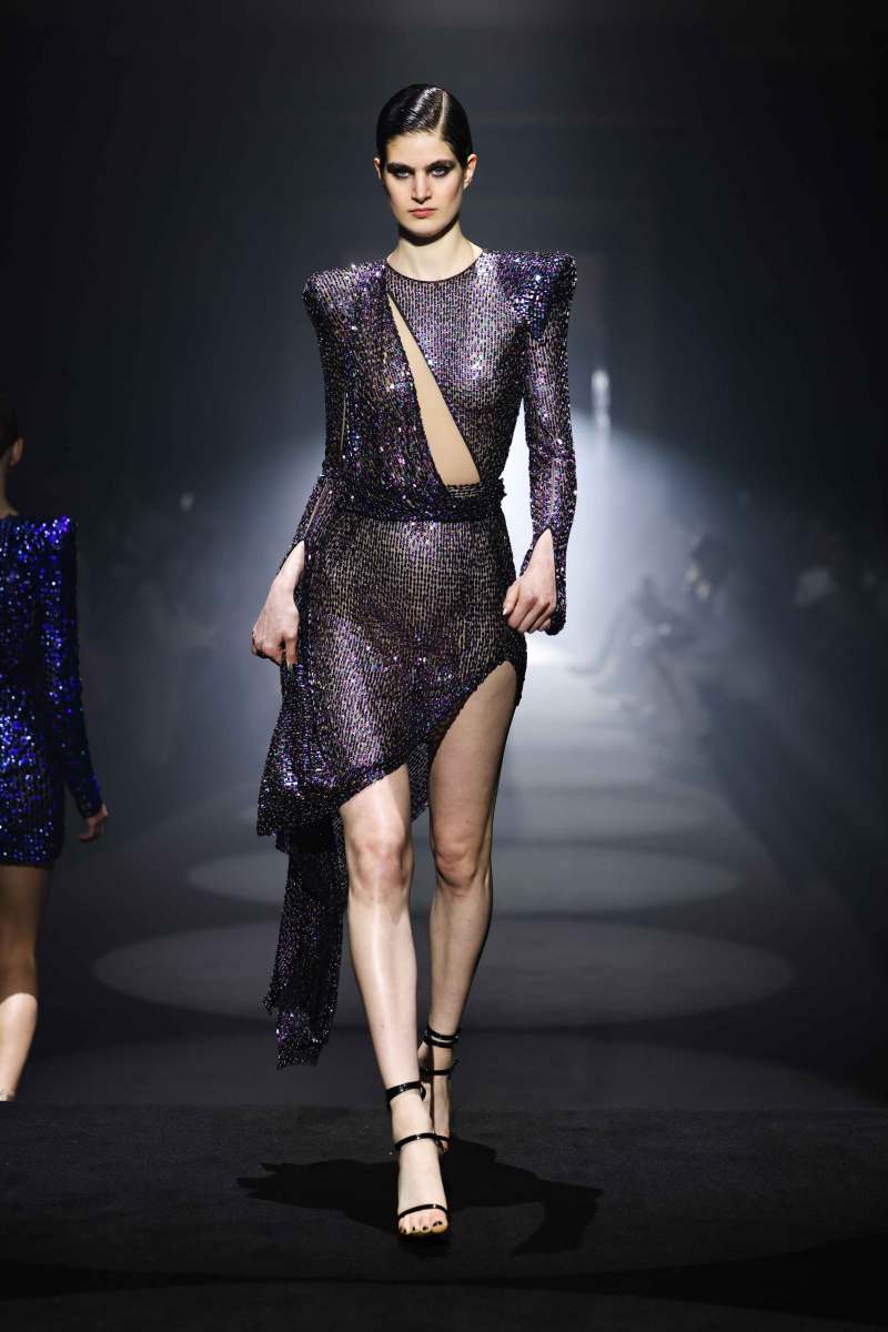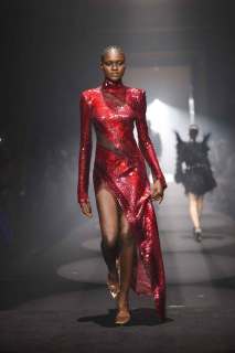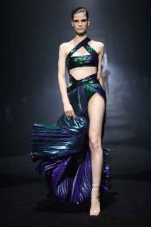 Uno spettacolo leggero, luccicante e stravagante: per il suo tanto atteso ritorno, Julien Macdonald ha messo in piedi una serata all’insegna del glamour. Gli abiti ultra-sfarzosi e seducenti sembrano creati apposta per una serata fascinosa: spiccano le moltissime paillettes e i brillantini, i capi metallici e i miniabiti drappeggiati con silhouette aderenti, tutti pezzi che giocano su un attento vedo-non vedo, lasciando in vista buona parte del corpo delle modelle. Risalta inoltre il bianco abito di piume indossato da Cindy Bruna e il body nero ornato da un mantello dal collo di piume portato da un’acclamatissima Winnie Harlow. Una collezione brillante e affascinante quella portata da Julien Macdonald alla LFW, presentata in una serata piena di gioia ed entusiasmo: un ritorno luminoso.