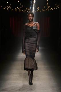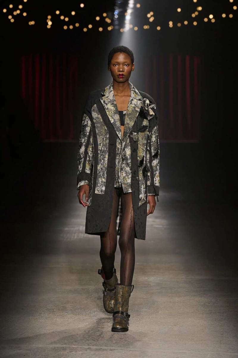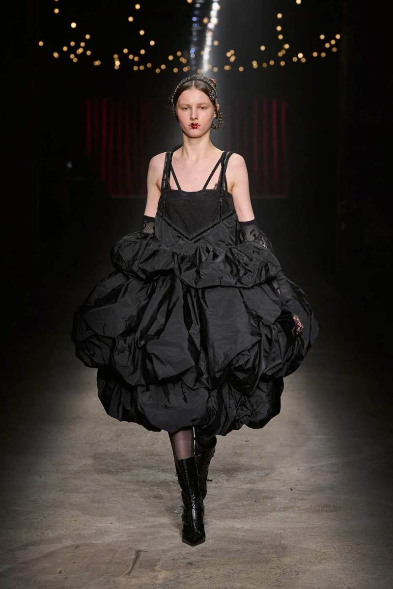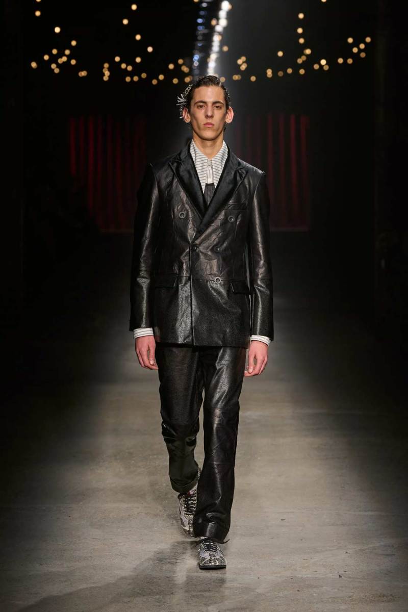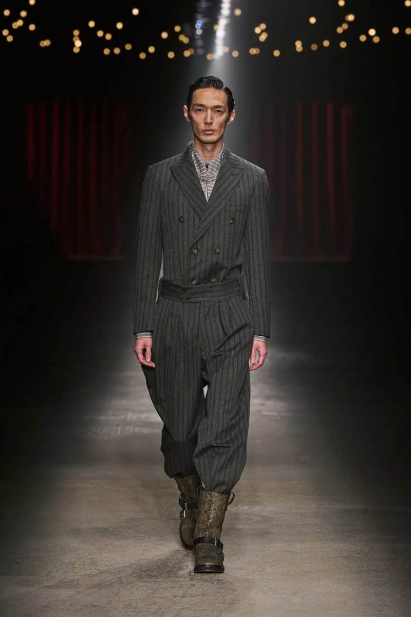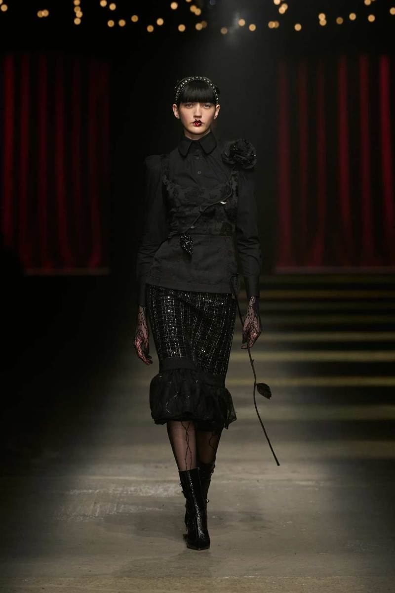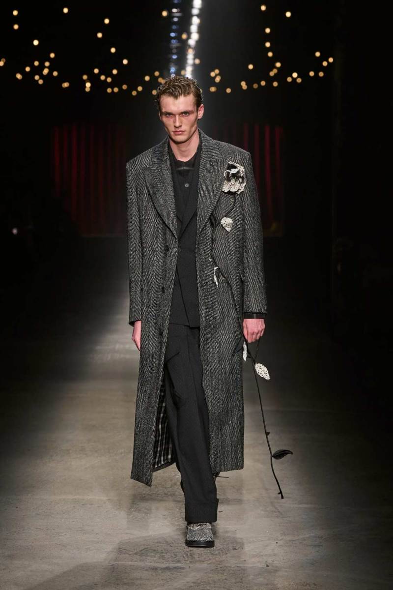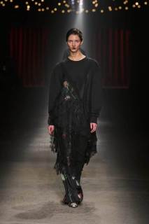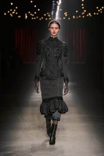 Da non perdere i colletti a fiocco e il trucco sui volti dei modelli che esprimono tutta la drammaticità della collezione.
