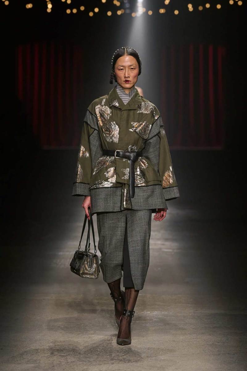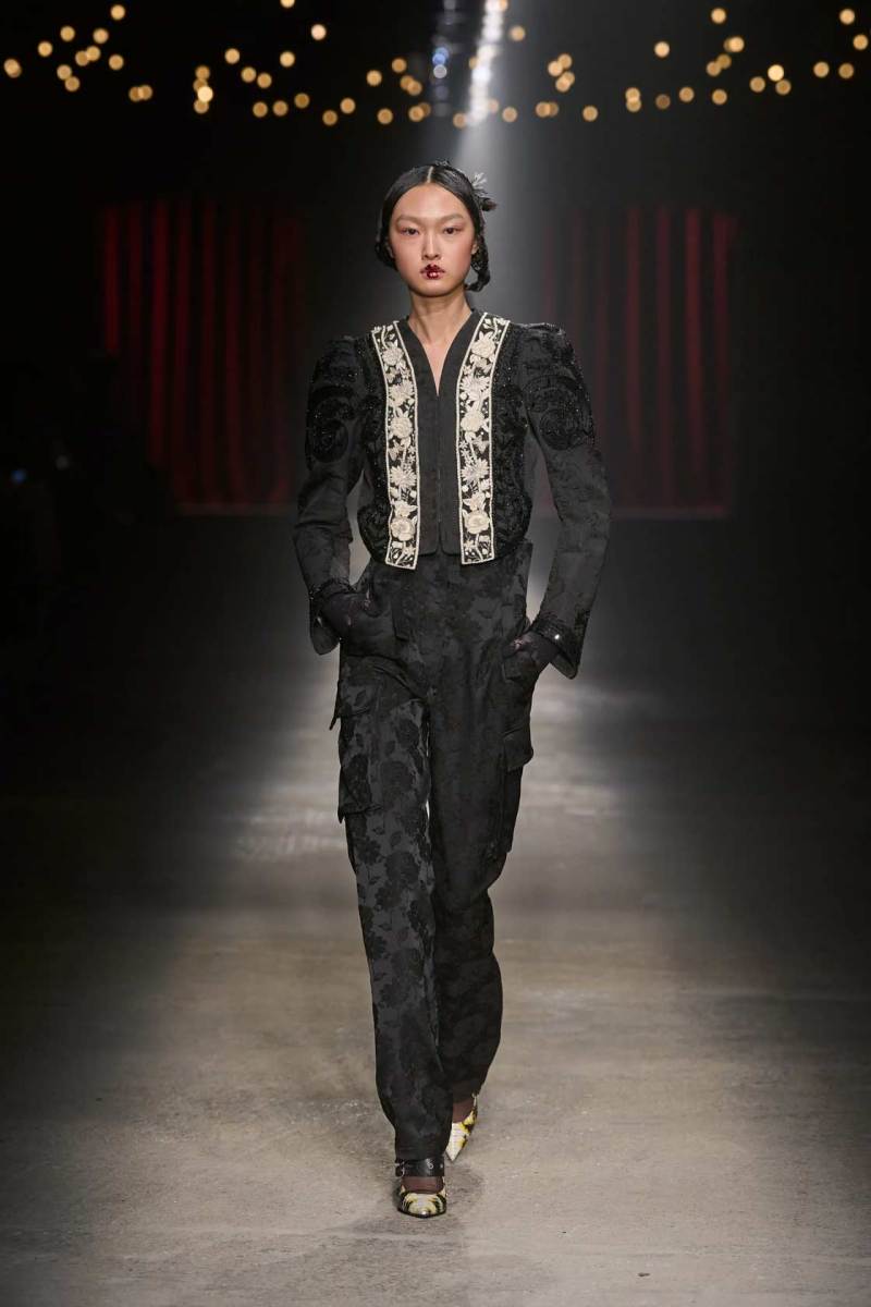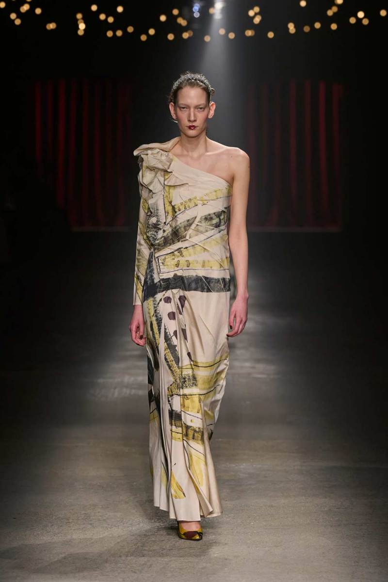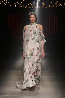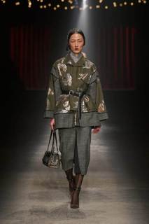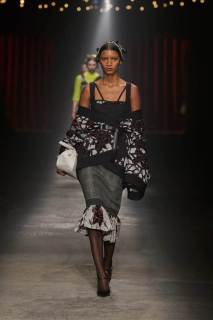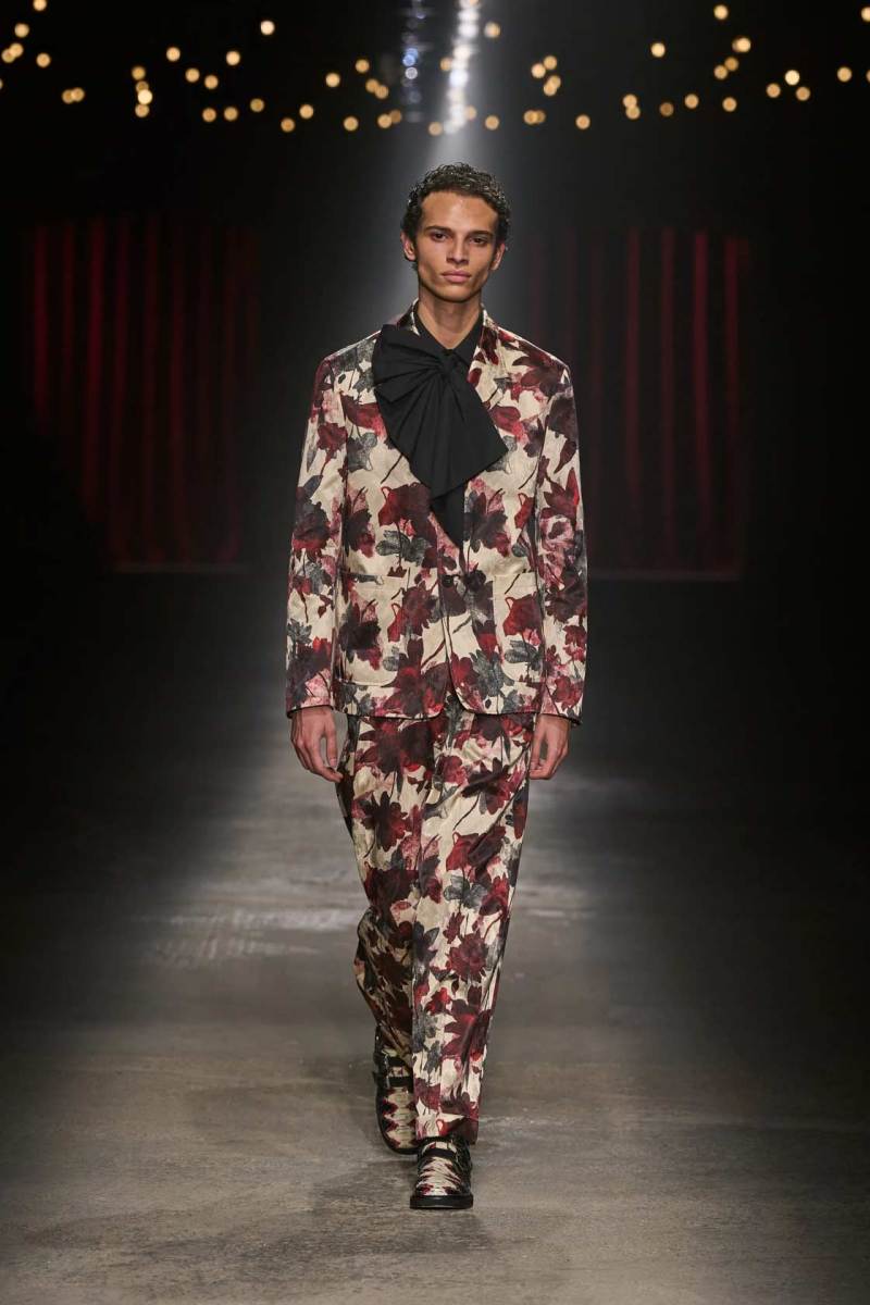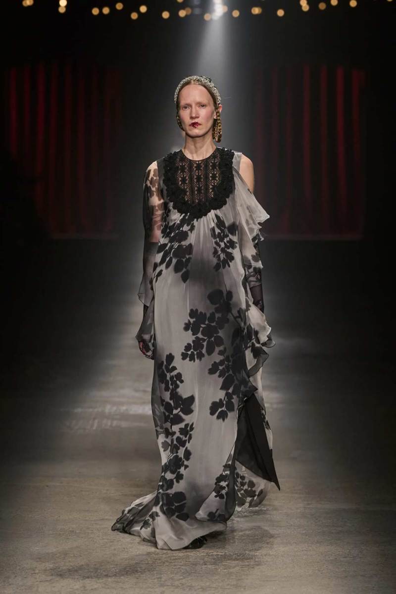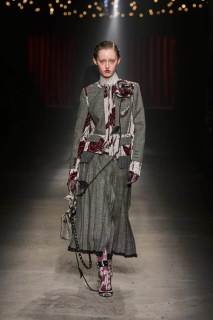 C’è tanto melodramma: completi in principe di Galles, pelle goffrata e poi altrettanto romanticismo: chiffon e seta leggera. I tagli degli abiti da sera sono interessanti e speriamo di vederne di più nelle prossime presentazioni. La palette cromatica va dal rosso Marras al nero passando per toni di grigio e verde; le stampe anche in questa collezione riprendono sapientemente il mondo della flora.