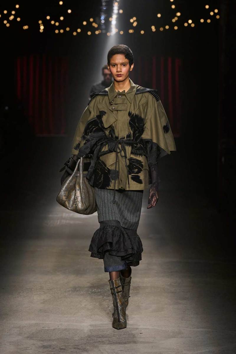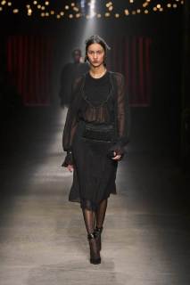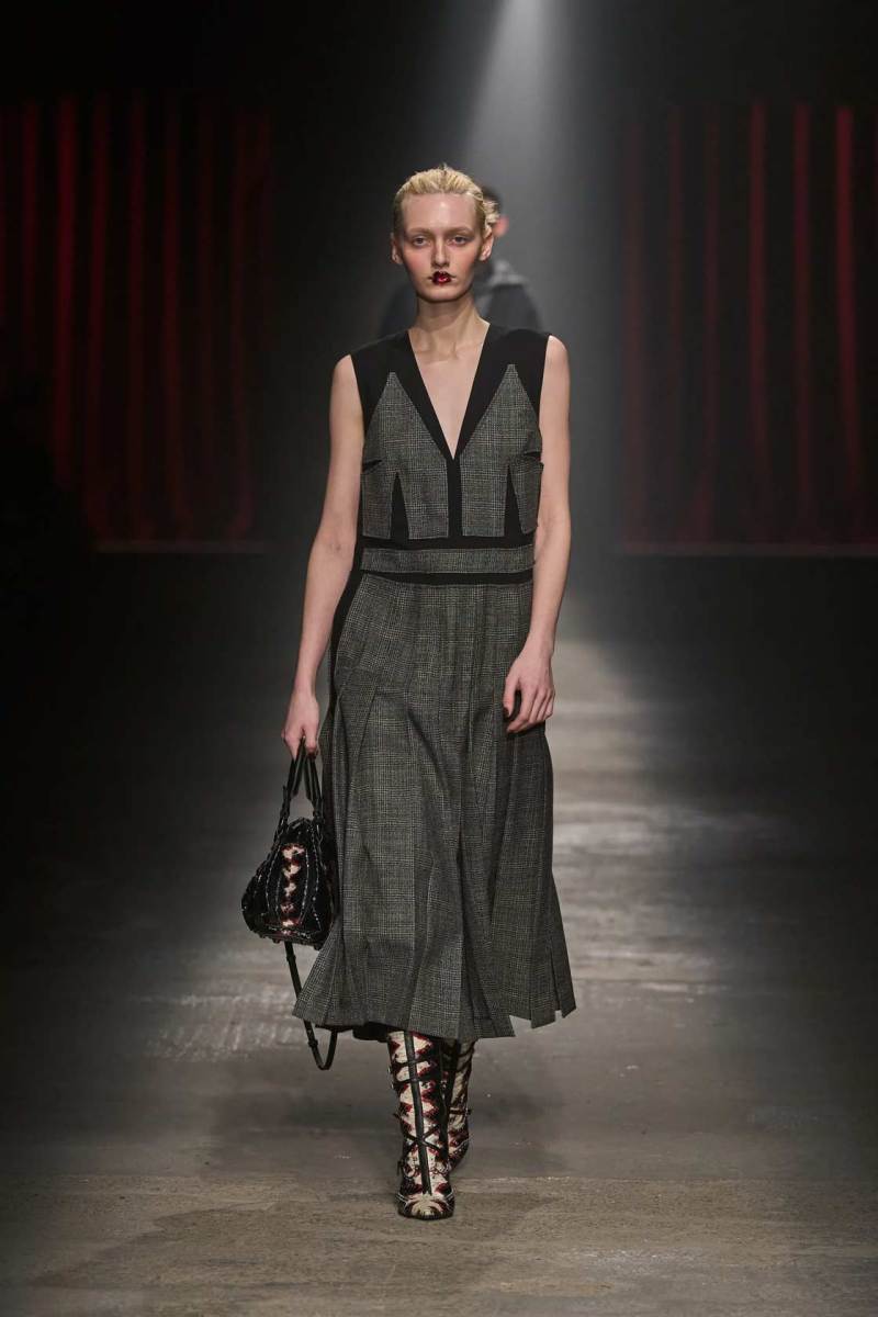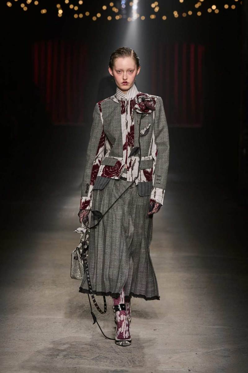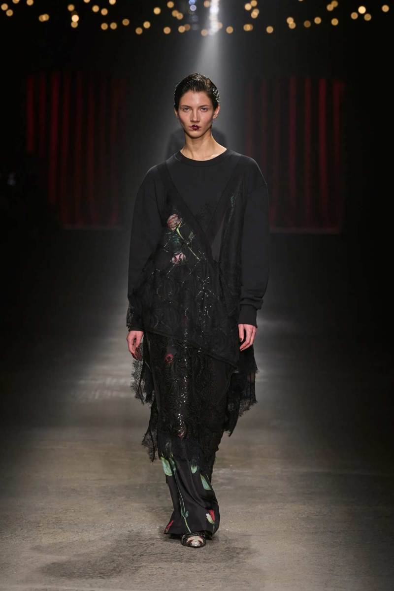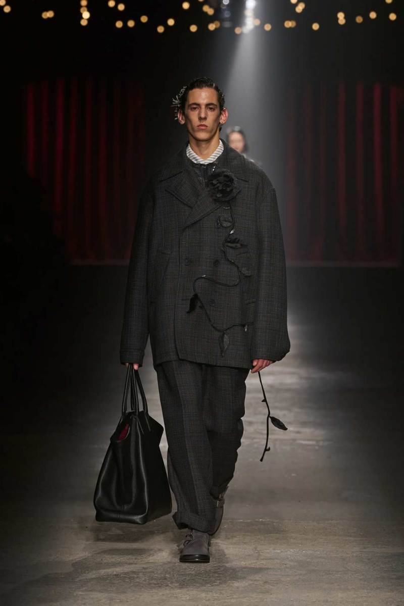 C’è tanto melodramma: completi in principe di Galles, pelle goffrata e poi altrettanto romanticismo: chiffon e seta leggera. I tagli degli abiti da sera sono interessanti e speriamo di vederne di più nelle prossime presentazioni. La palette cromatica va dal rosso Marras al nero passando per toni di grigio e verde; le stampe anche in questa collezione riprendono sapientemente il mondo della flora.