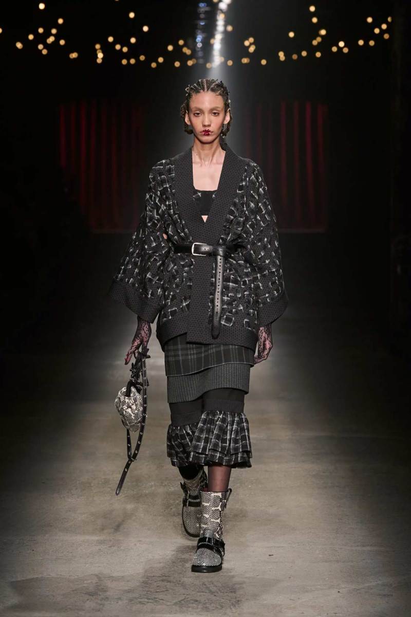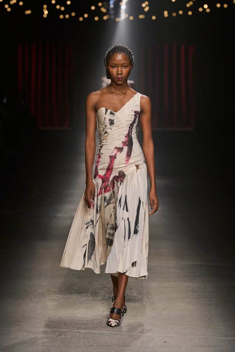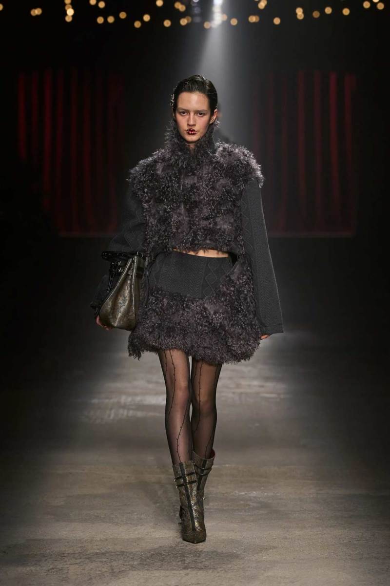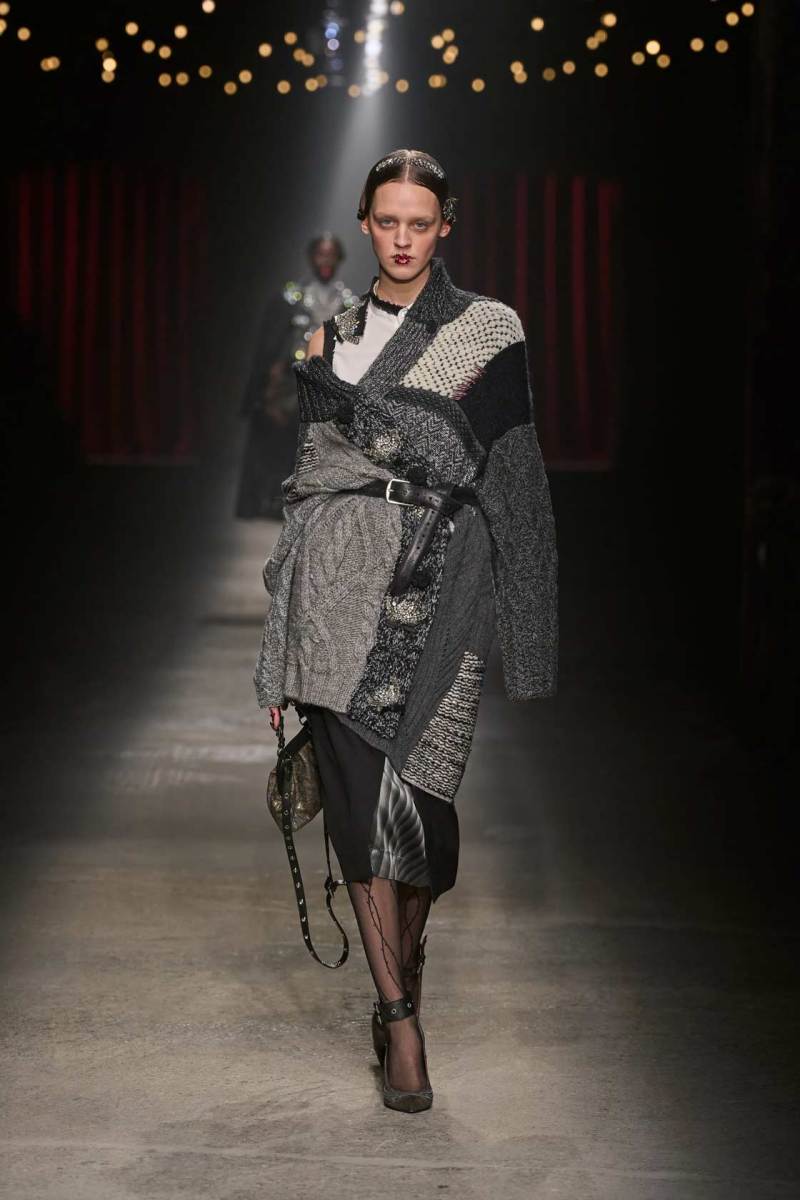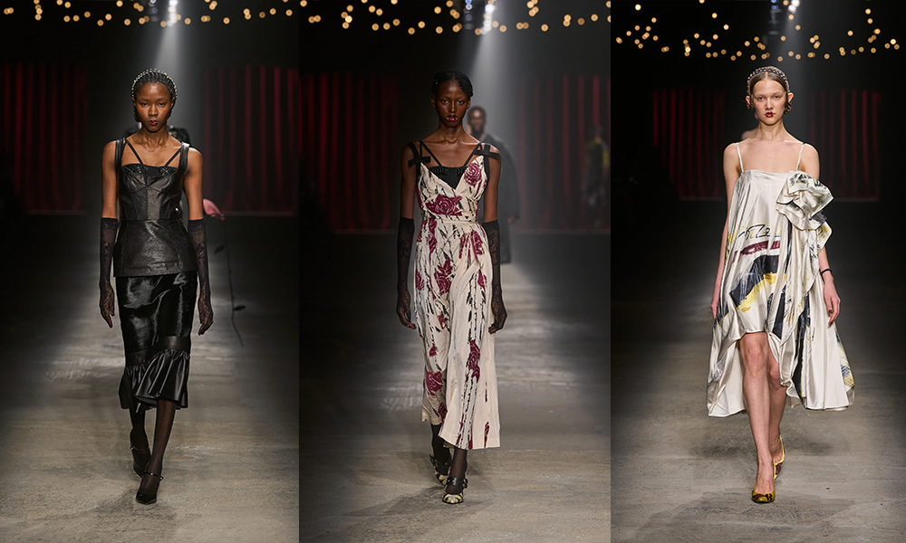 C’è tanto melodramma: completi in principe di Galles, pelle goffrata e poi altrettanto romanticismo: chiffon e seta leggera. I tagli degli abiti da sera sono interessanti e speriamo di vederne di più nelle prossime presentazioni. La palette cromatica va dal rosso Marras al nero passando per toni di grigio e verde; le stampe anche in questa collezione riprendono sapientemente il mondo della flora.