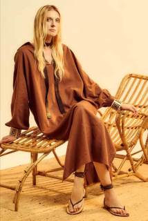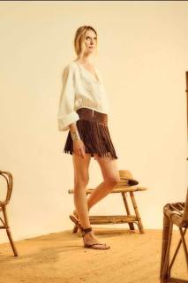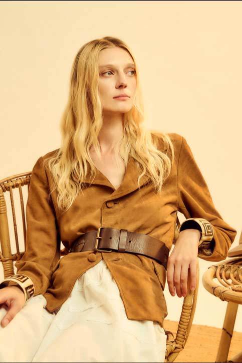 La scelta dei tessuti è altrettanto sofisticata. Cotoni pregiati, lini leggeri e mussole decorate con intarsi di pizzo convivono con sete dall’animo animalier e suede impreziositi da frange, simboli di un’eredità che si riflette in ogni pezzo della collezione. Il risultato è una linea di abiti senza tempo, pensata per una donna sicura di sé, capace di esprimere la propria individualità senza mai rinunciare a un tocco di sensualità e femminilità.