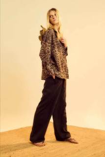 Le tonalità della terra dominano la scena: dal beige delicato all’avorio etereo, passando per il kaki e il marrone intenso, in contrasto con il nero profondo. Questi colori creano un equilibrio perfetto tra raffinatezza e forza, mentre i dettagli country aggiungono un tocco unico a ogni capo, rendendolo inconfondibile. Gonne lunghe, pantaloni sartoriali e kimono si arricchiscono di elementi iconici che raccontano la tradizione del brand con una visione nuova e fresca.