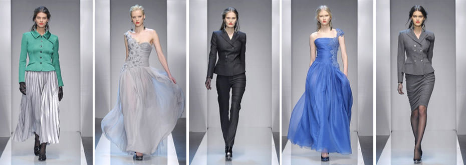 Dulcis in fundo…lo stilista sorprende con abiti principeschi in grigio, verde e azzurro. Ecco, come in un attimo, la donna diventa regina.