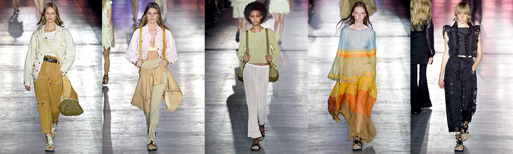 Bermuda cargo dall’elegante costruzione elaborata, tute di chiara ispirazione “workwear” dal taglio maschile in versione chic, versus camicette leggere in pizzo Sangallo con volant e abiti fluidi. È nell’equilibrio tra i contrasti e i giochi di trasparenza che prende forma la donna moderna. Identità fluide, genuine, che trovano spazio nei dettagli, abilmente progettati dalla stilista. Si parte dalle sbarazzine e ironiche bretelle, per arrivare alle sensuali sottovesti in pizzo, passando per le tasche oversize e i sandali bassi con la fibbia. La personalità emerge negli abbinamenti, capaci di comunicare le sfaccettature di chi li indossa. Così è la personalità di ciascuno a essere chic, e rende autentico e unico il design dei capi. Una collezione per mettersi a nudo, per essere naturalmente se stessi, come quando si è baciati dal sole in primavera.