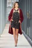 Potremmo definirlo un vero e proprio tiro alla fune tra le influenze urbane e le proporzioni degli abiti, tanto da sembrare orientati verso una clientela più matura con gonne midi, giacche e cappotti over size. Quasi tutti i pezzi della collezione sono stati impreziositi e resi scintillanti; in particolare un completo viola, dove un abito in maglia, un gilet di paillettes e una giacca di tweed rendevano la modella una star hollywoodiana in passerella.