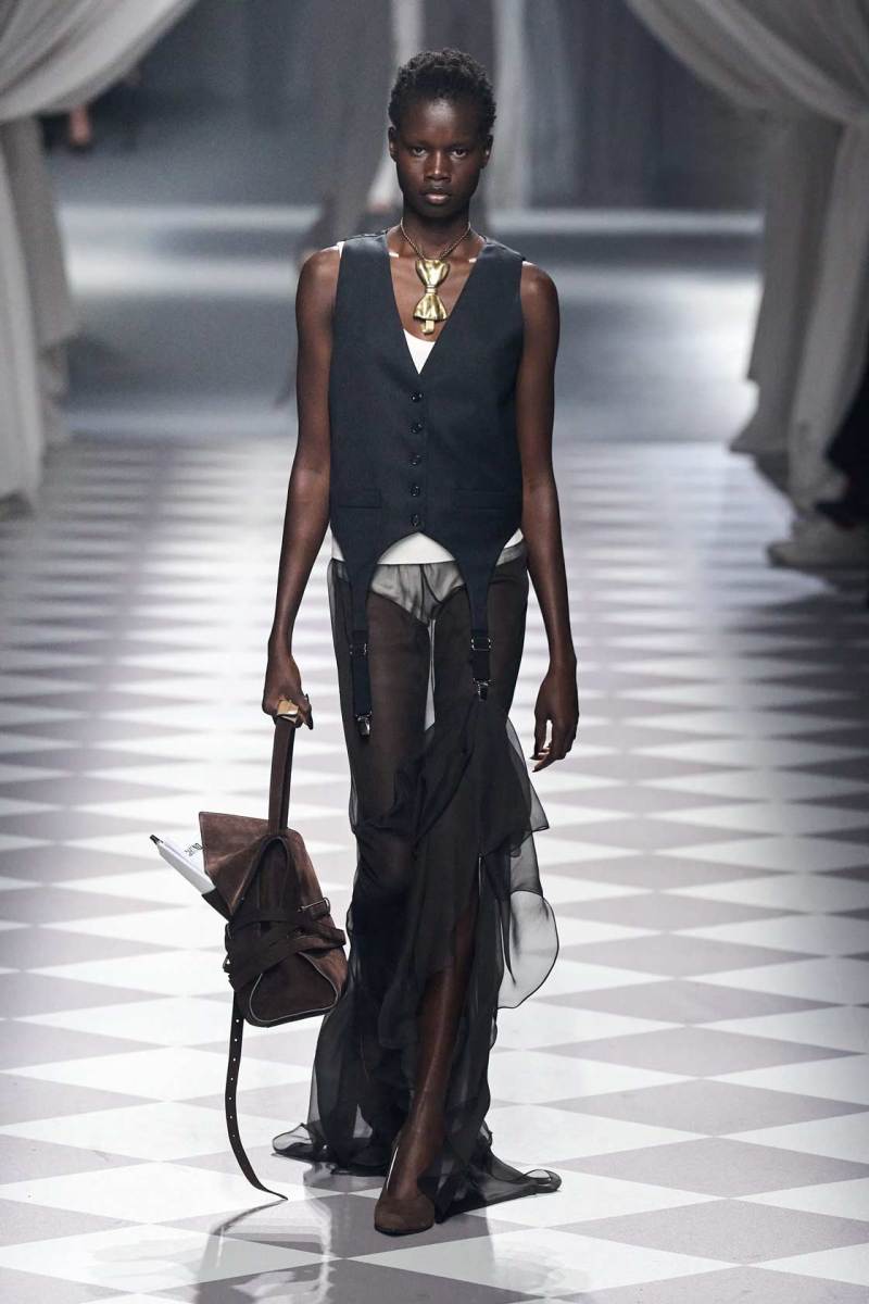 E ancora perle e cravatte, che si fanno decori e stampe. Bretelle e guepiere effetto trompe l’oeil, serie di cravatte che diventano bustier, papillon come collane e perle come spalline, un mondo dove nulla è come sembra.