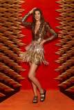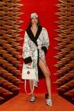 I suoi abiti sono un mix di personalizzazioni; sembra di vedere delle tele dapprima bianche farsi “macchiare” da grafismi effetto matita o da disegni che ricordano quelli dei murales. Durante lo show non mancano i pezzi cult del brand, diventati negli anni punto di riconoscimento nel mondo, come la leather jacket, rigorosamente borchiata, e il largo uso di paillettes per uno stile sporty da vera Lady Plein.