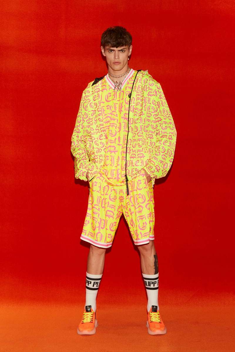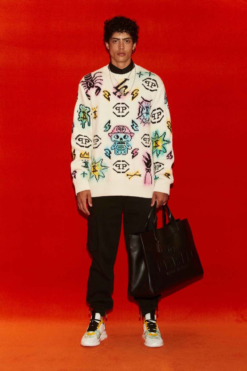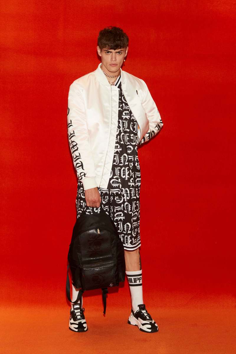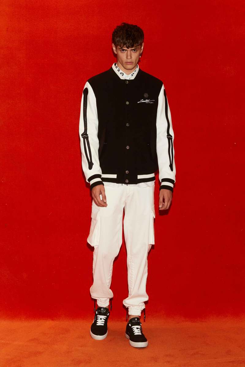 La collezione vede sfilare mondi diversi e utilizza temi cromatici legati a stampe e opere d’arte: Burning Palms, Graffiti Monogram, Tattoo Inspired Graphics e Ananas Skye sono lo specchio dei trend caratterizzanti la prossima stagione. Philipp Plein sceglie di intraprendere un viaggio tra bene e male, storia e leggenda, e lo fa coinvolgendo nei capi d’abbigliamento gli scheletri prima, e animali come l’aquila e il serpente poi.