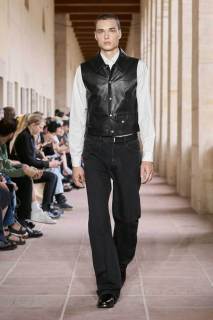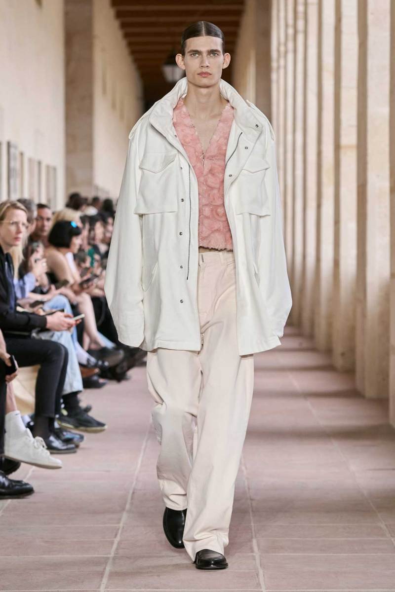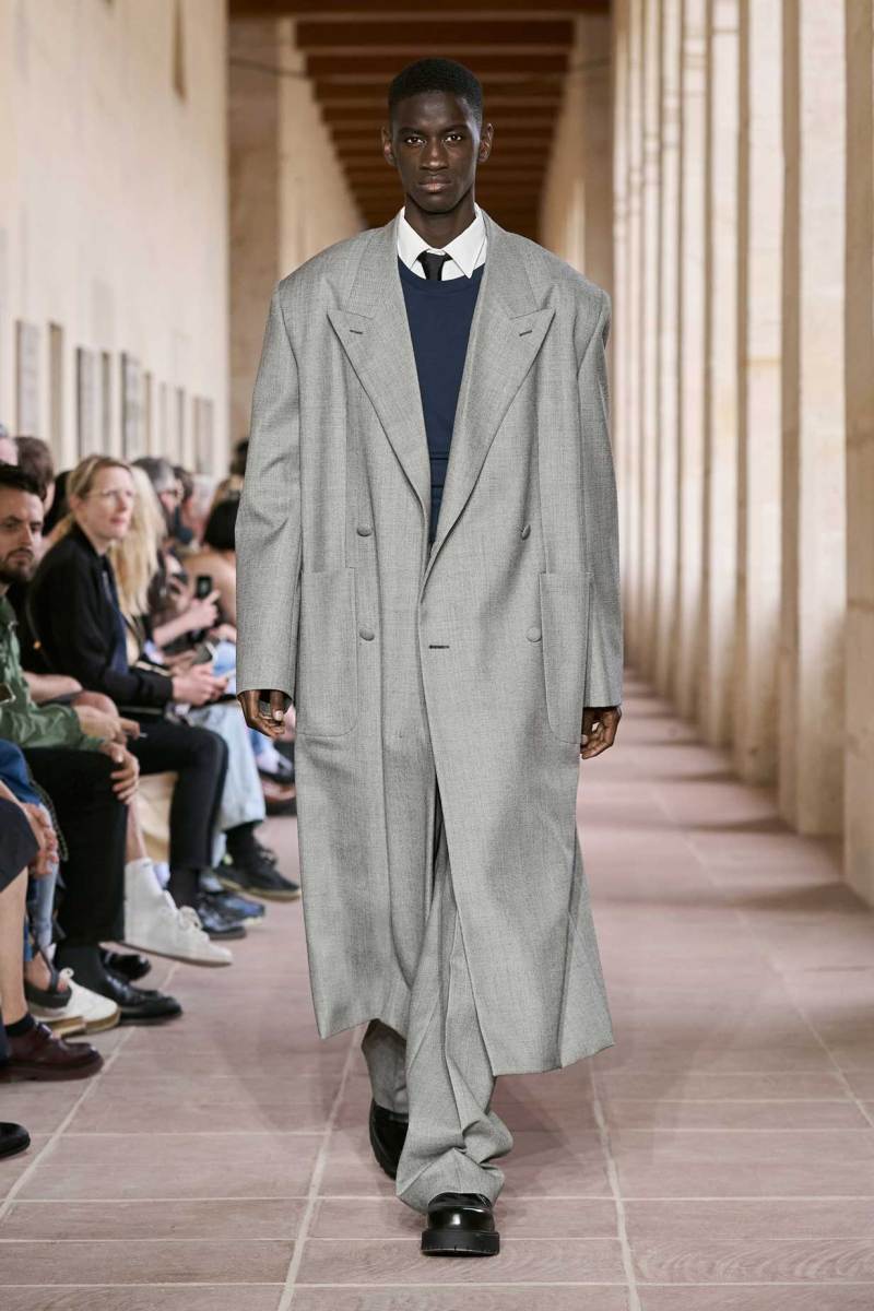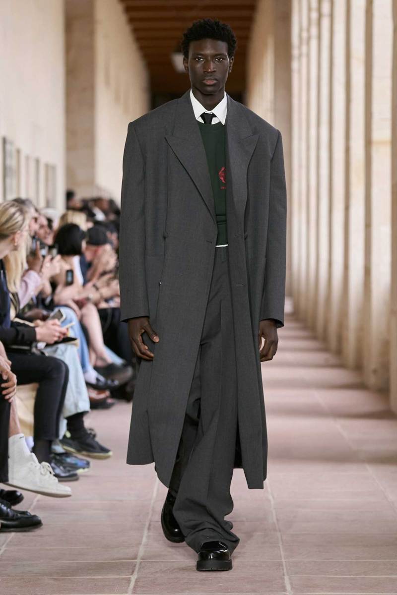 Il percorso dello stilista ha subito come un ribaltamento. Se prima il sartoriale faceva capolino alla fine dei suoi show, in questo sono la prefazione, insieme a un dettaglio decisamente riconoscibile e autobiografico-stilistico. Camicia bianca e cravatta nera restano come base di ogni layering fino a quando la collezione non diventa più rilassata e daily wear.