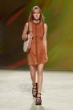 La collezione accompagna suggestioni a suoni psichedelici e non manca il focus sull’arancione, colore identificativo della Maison, che viene riproposto su abiti drappeggiati, canottiere e gonne con rouches. Mentre il rosa, il corallo e il rosso sono spesso mescolati insieme, come se fossero veramente cuciti nel deserto.